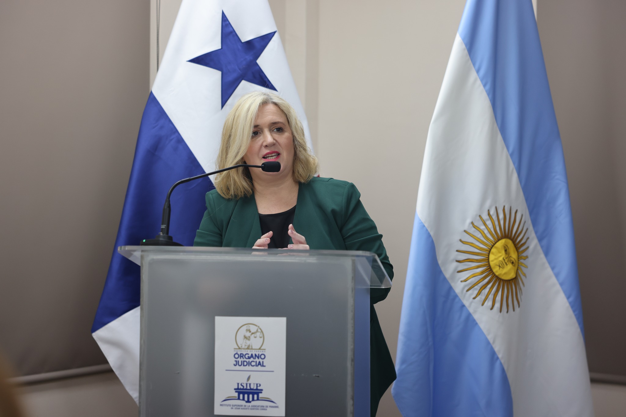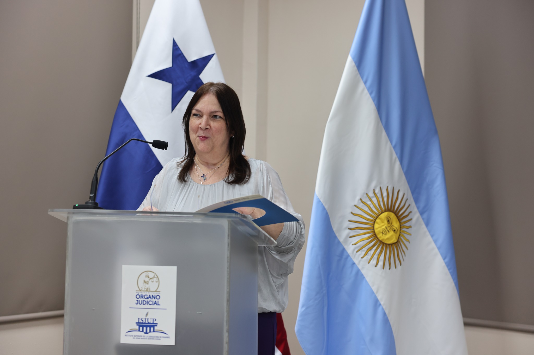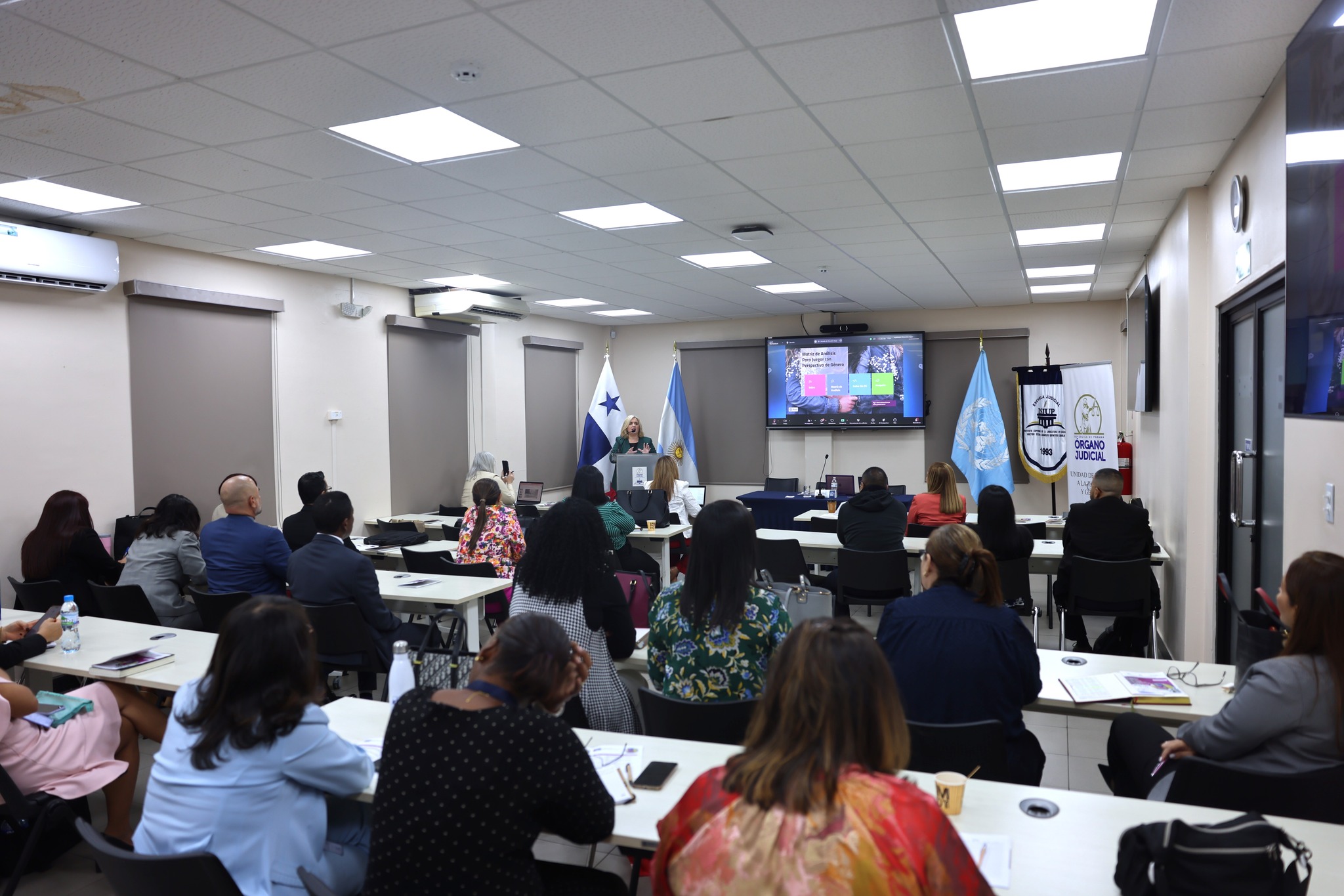 El acto inaugural contó con la participación de la H.M. Ariadne Maribel García Angulo, Magistrada de la Sala Segunda de lo Penal de la Corte Suprema de Justicia y Coordinadora de la Unidad de Acceso a la Justicia y Género; la señora Melissa Flynn, Representante Adjunta de UNODC para Centroamérica y el Caribe (ROPAN); la Magistrada María Soledad Gennari, del Tribunal Superior de Justicia de Neuquén, Argentina; y Raúl E. Olmos E., Director Encargado de la Escuela Judicial. Las palabras de apertura estuvieron a cargo de la Representante Adjunta de UNODC, mientras que la declaratoria formal de inauguración fue realizada por la Honorable Magistrada Ariadne Maribel García Angulo.