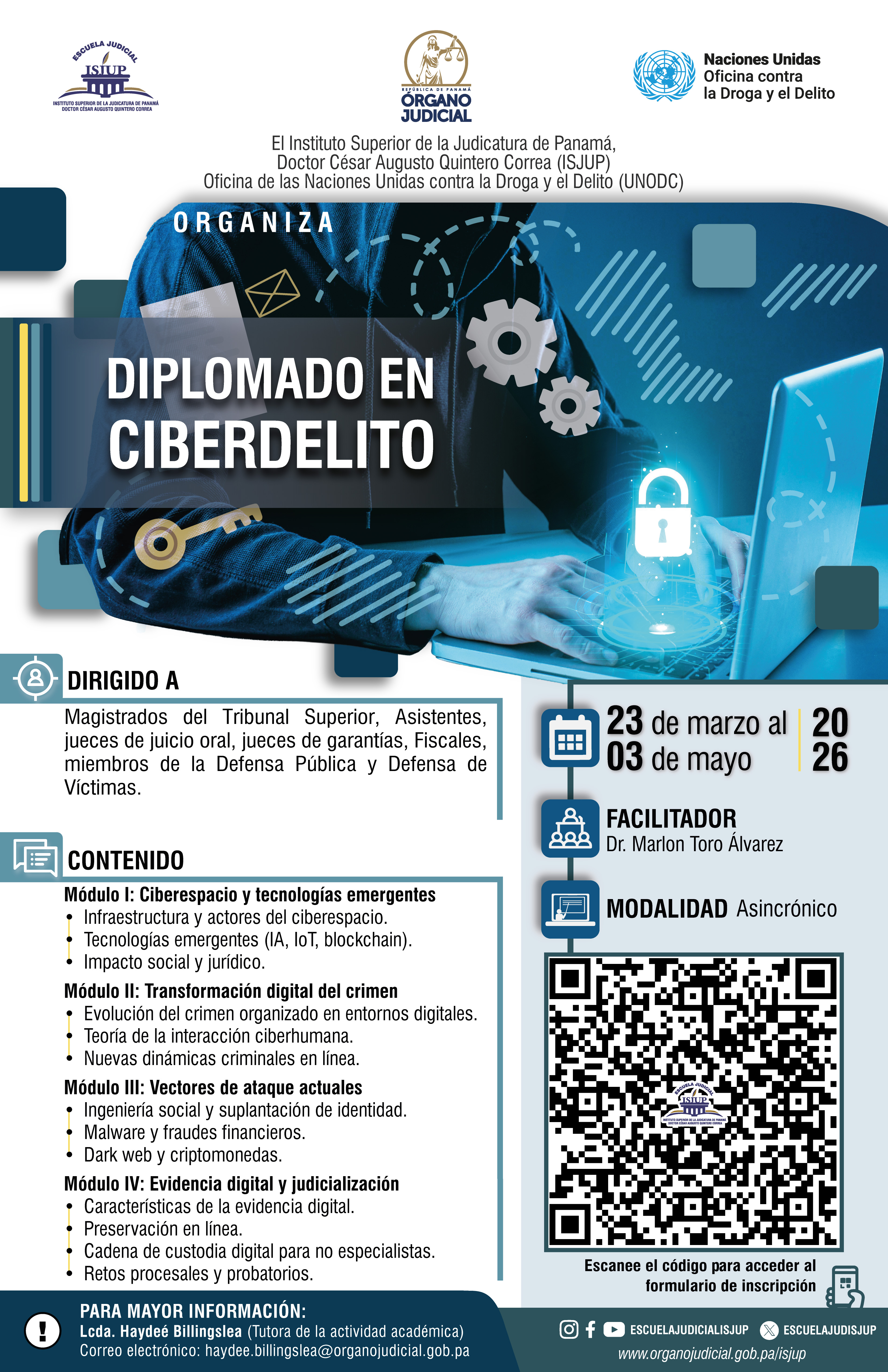 INSCRÍBETE EN EL DIPLOMADO EN CIBERDELITO Publicado: 2026-03-17 15:26:34 Email Reproducir DIPLOMADO CIBERDELITO EN LA ERA DIGITAL: Rellenar formulario