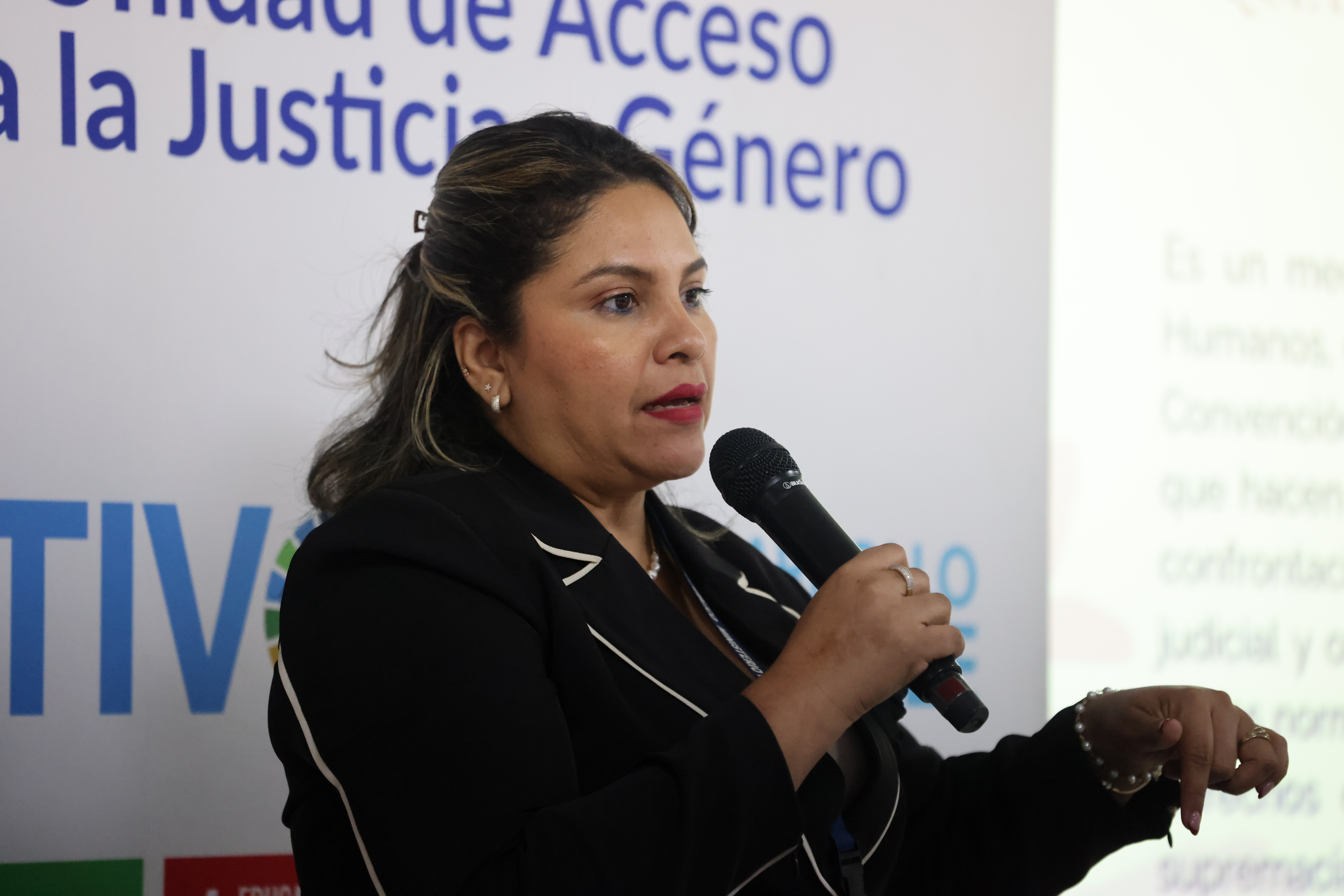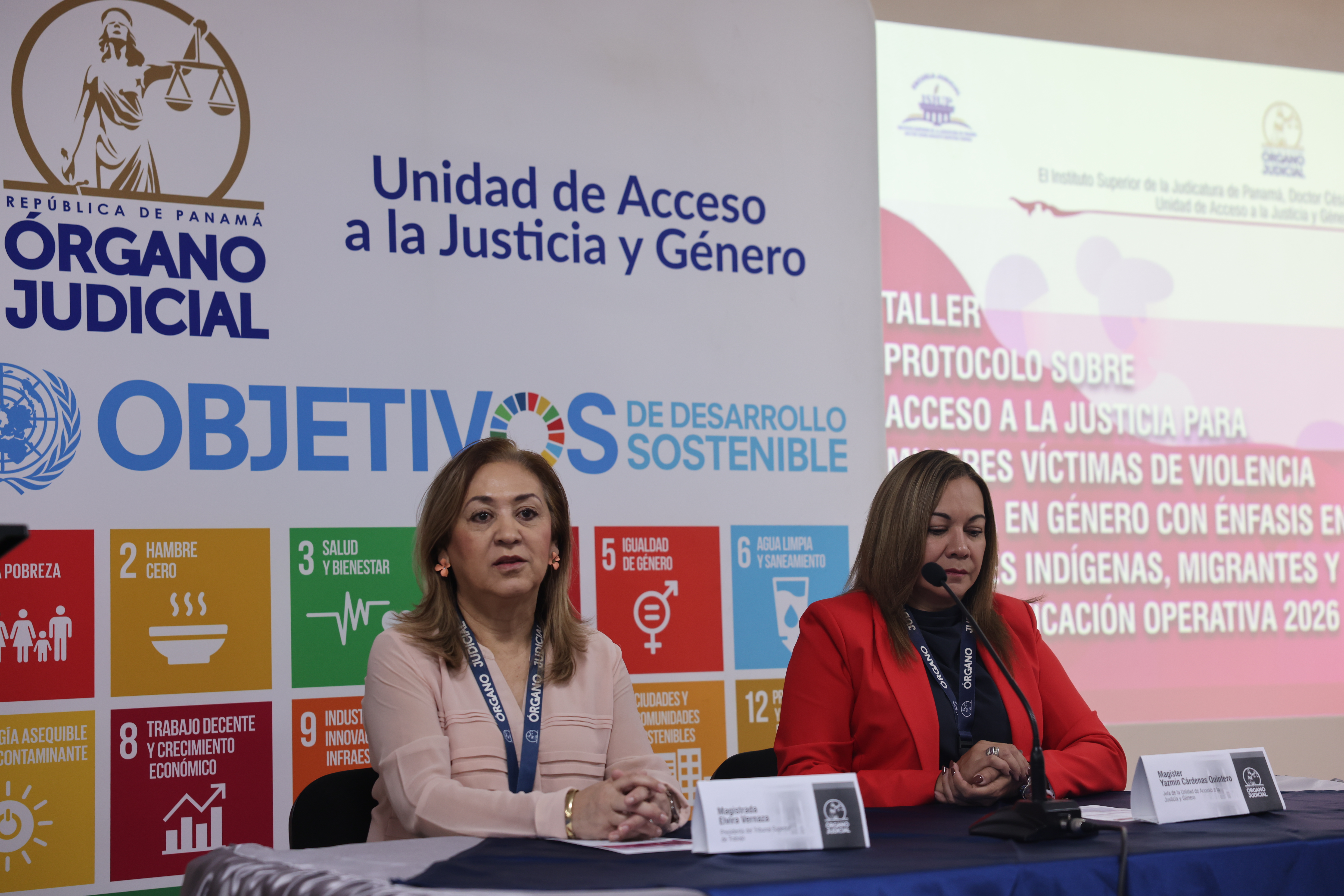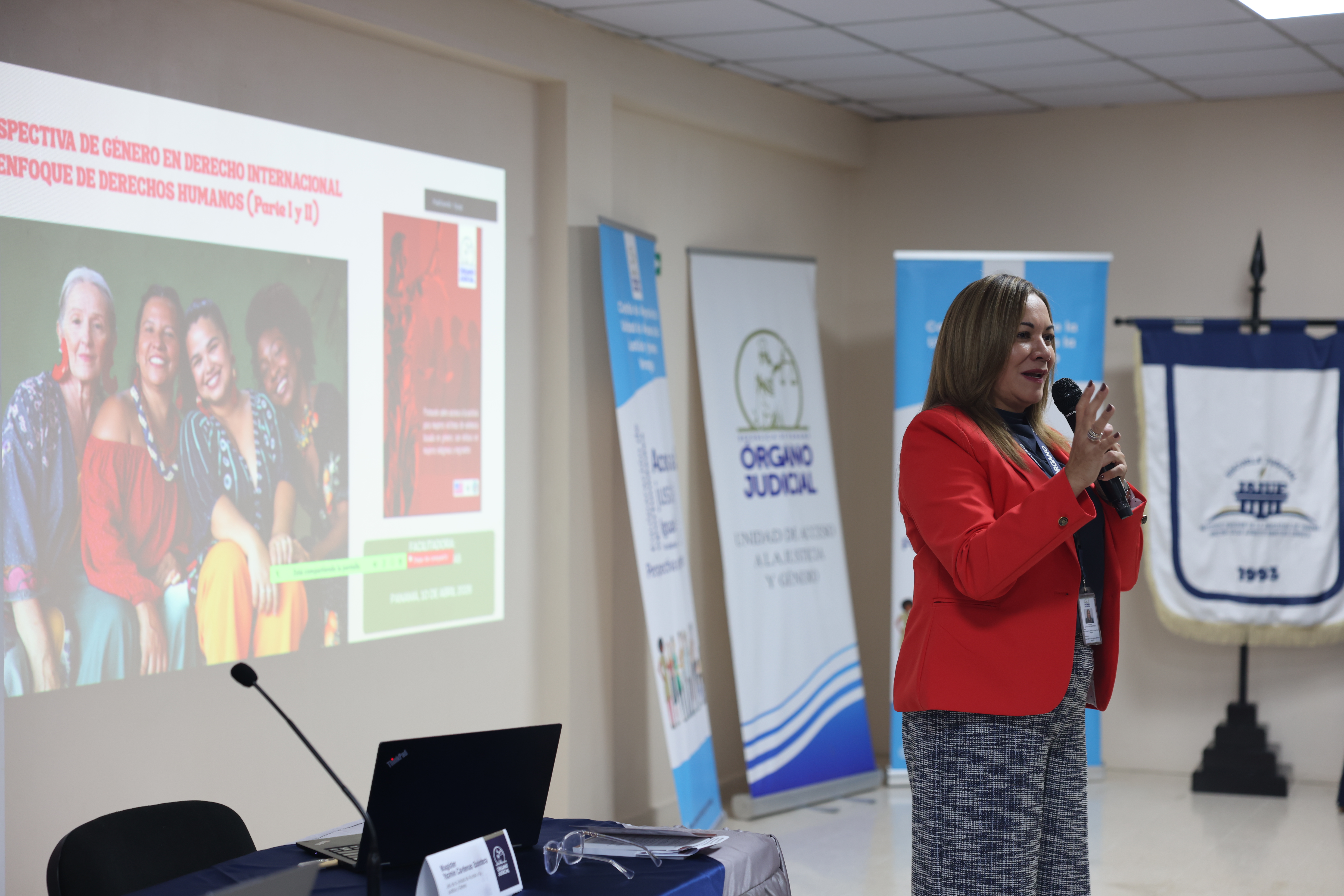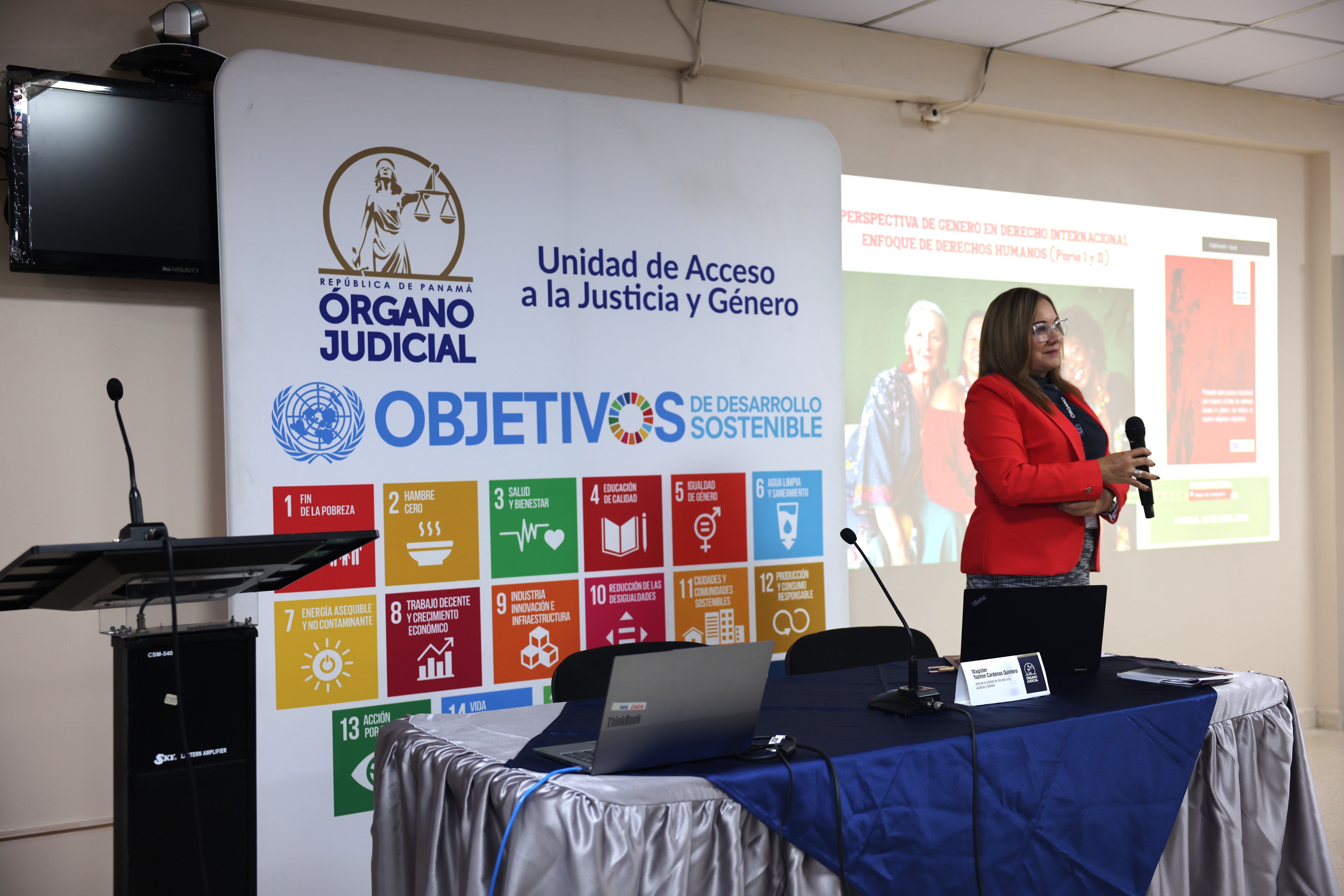 - Lcda. Yazmín Cárdenas Quintero, Jefa de la UNAJUG, con una exposición sobre el enfoque de derechos humanos y las convenciones internacionales aplicables.