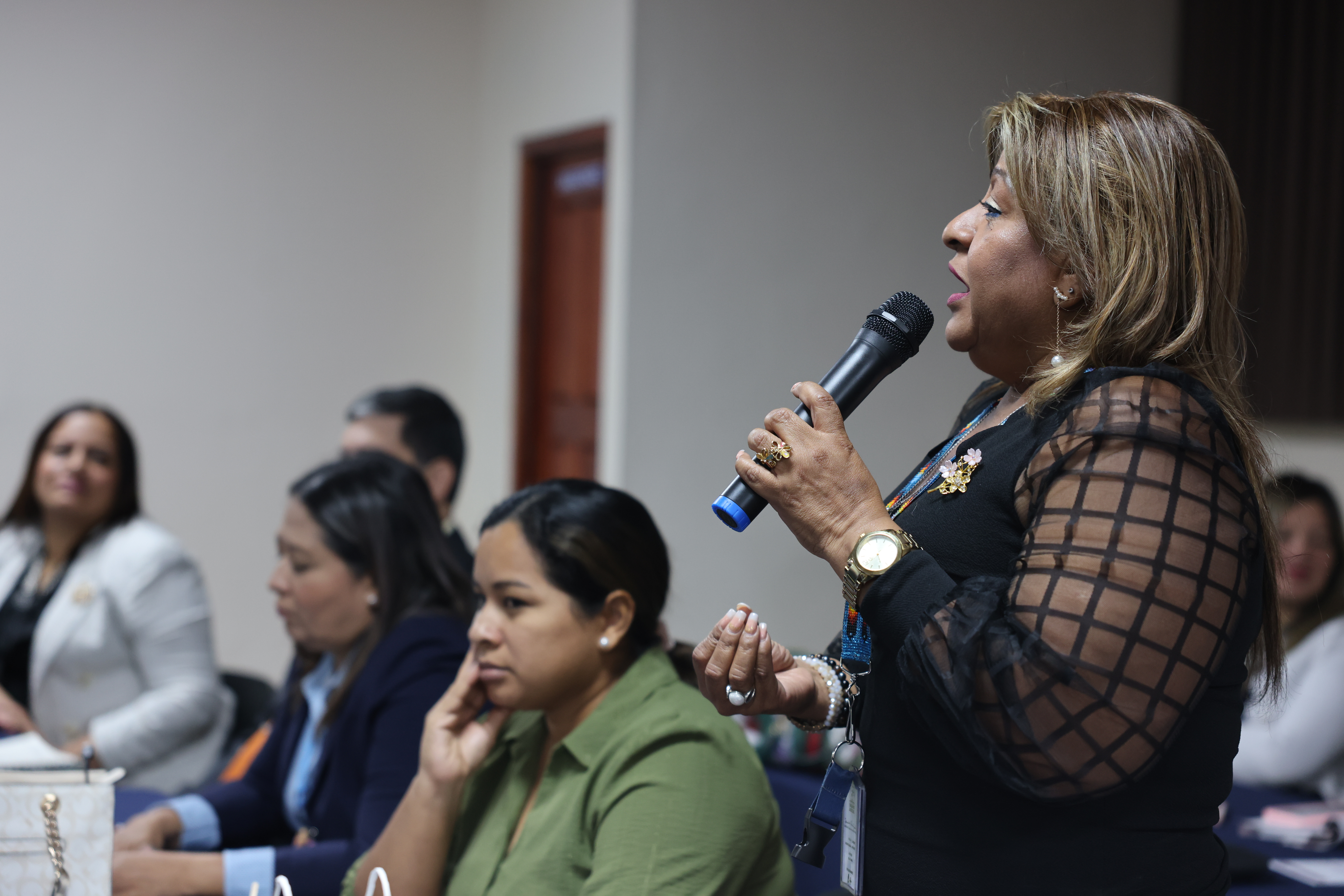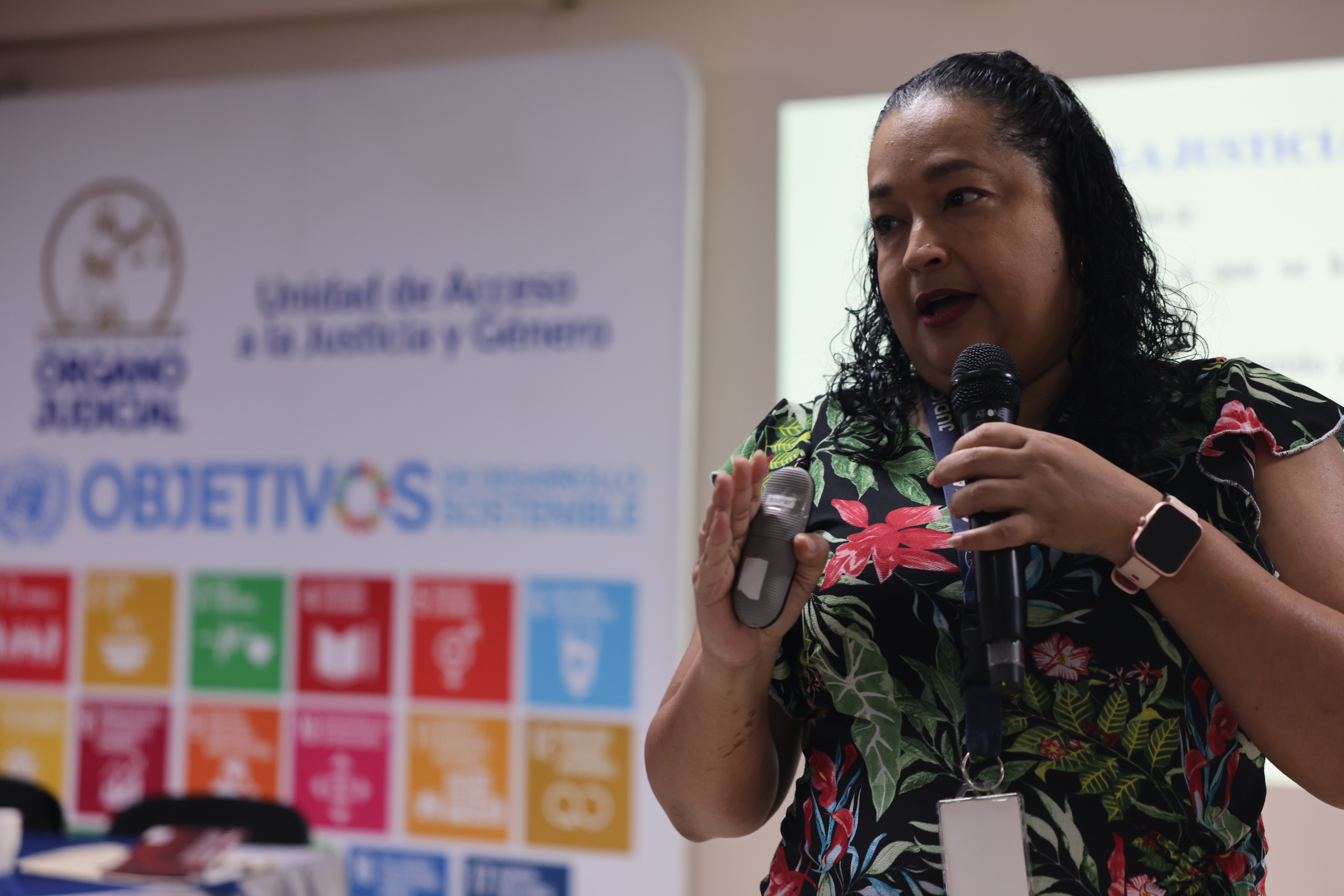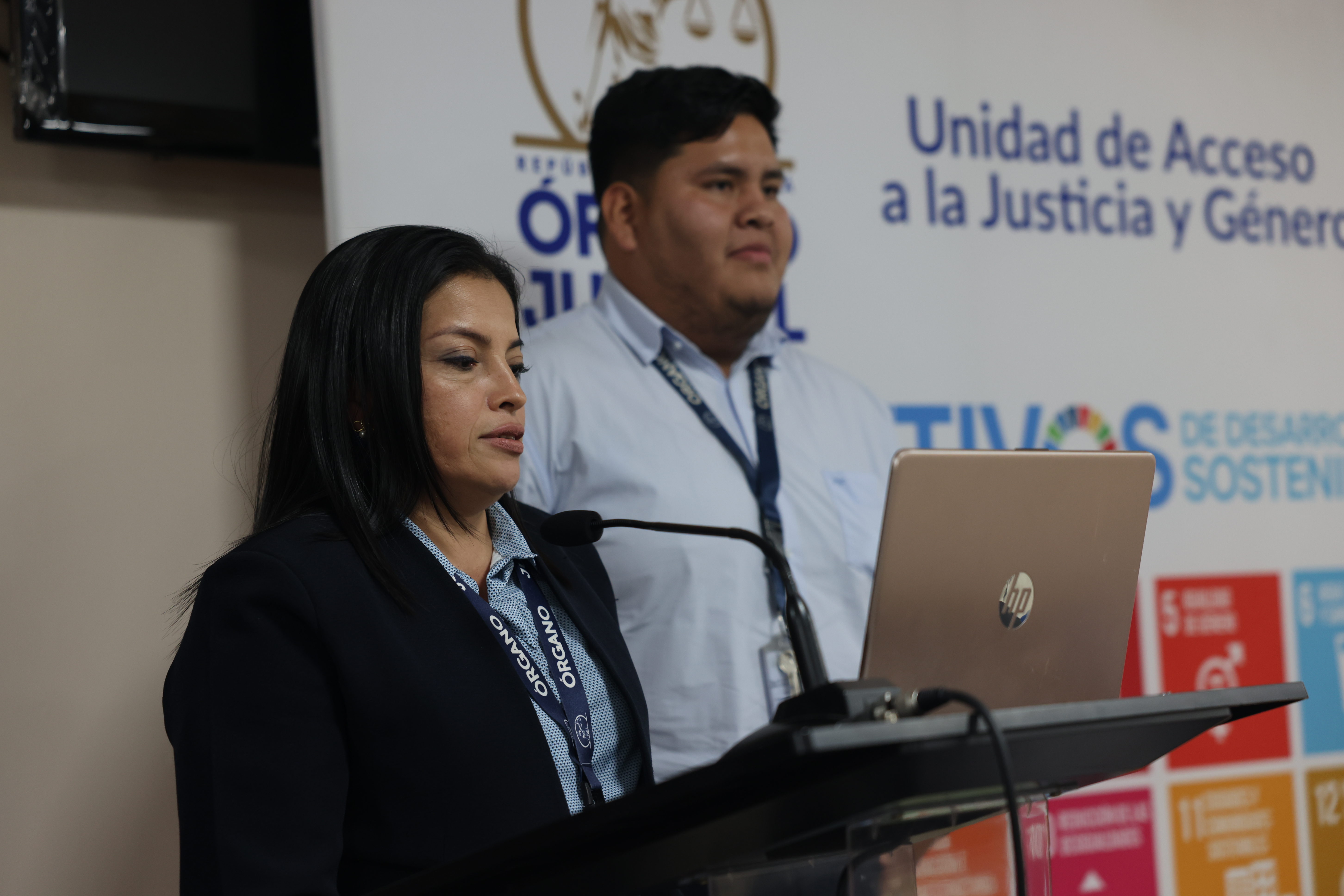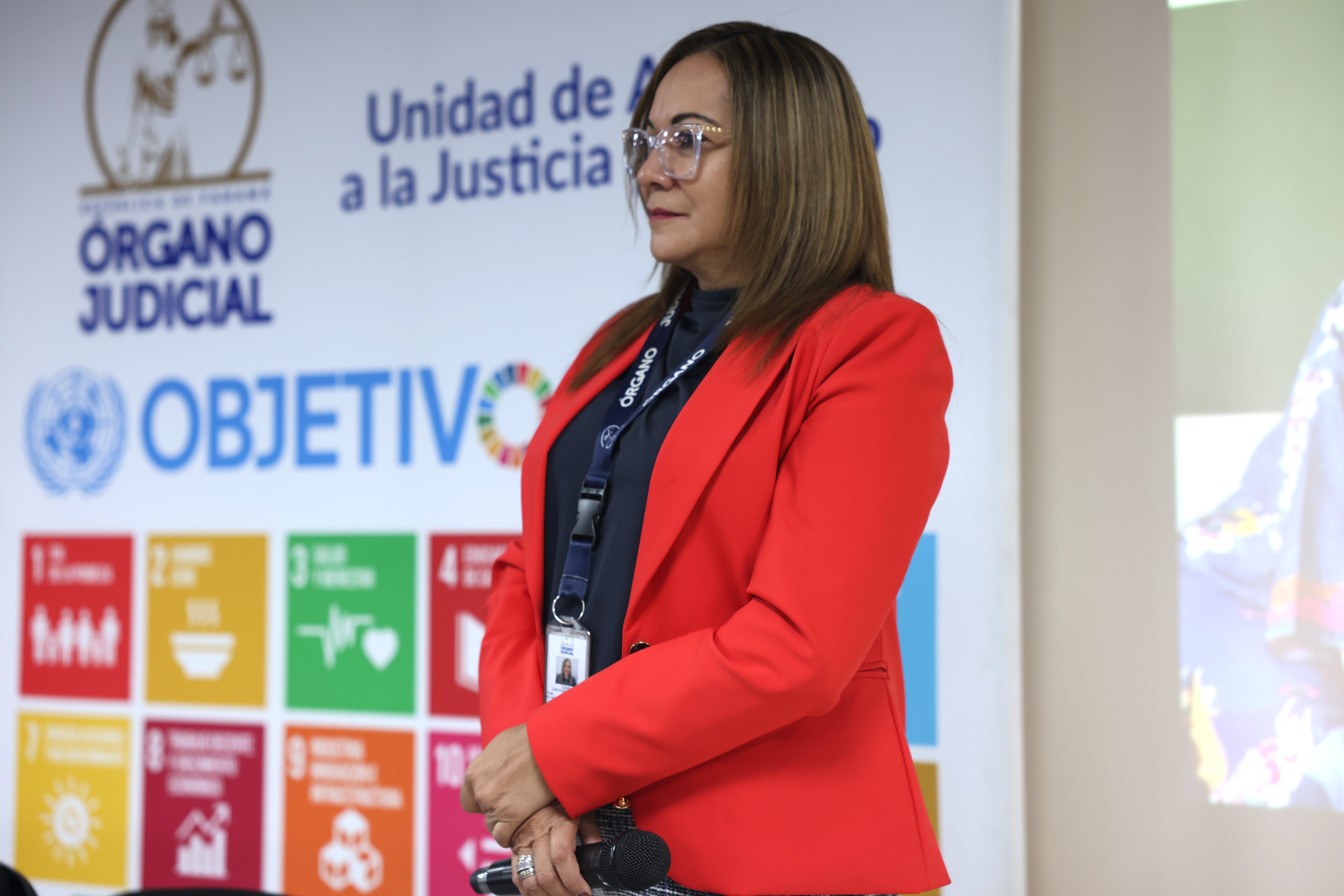 - Lcda. Yazmín Cárdenas Quintero, Jefa de la UNAJUG, con una exposición sobre el enfoque de derechos humanos y las convenciones internacionales aplicables.