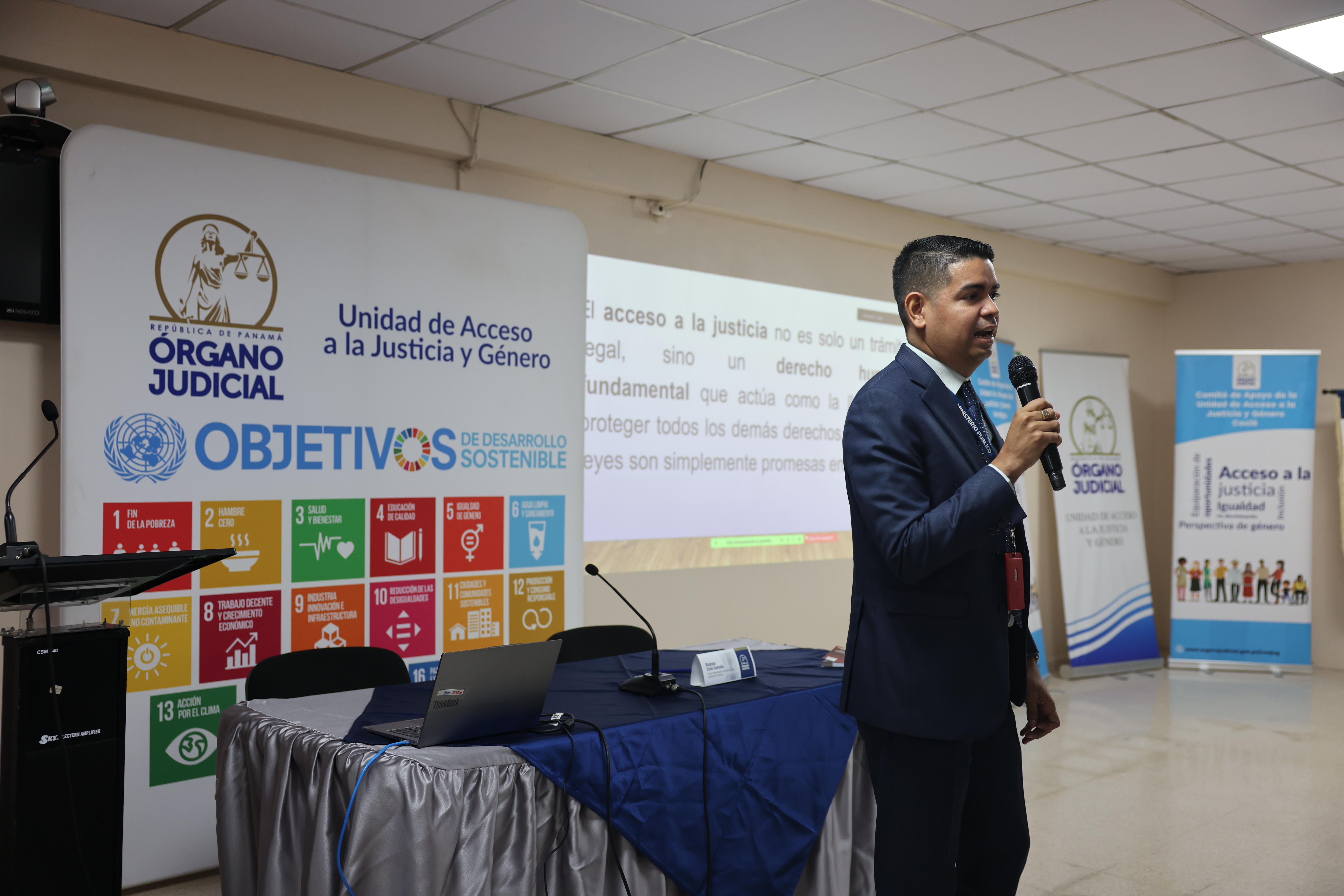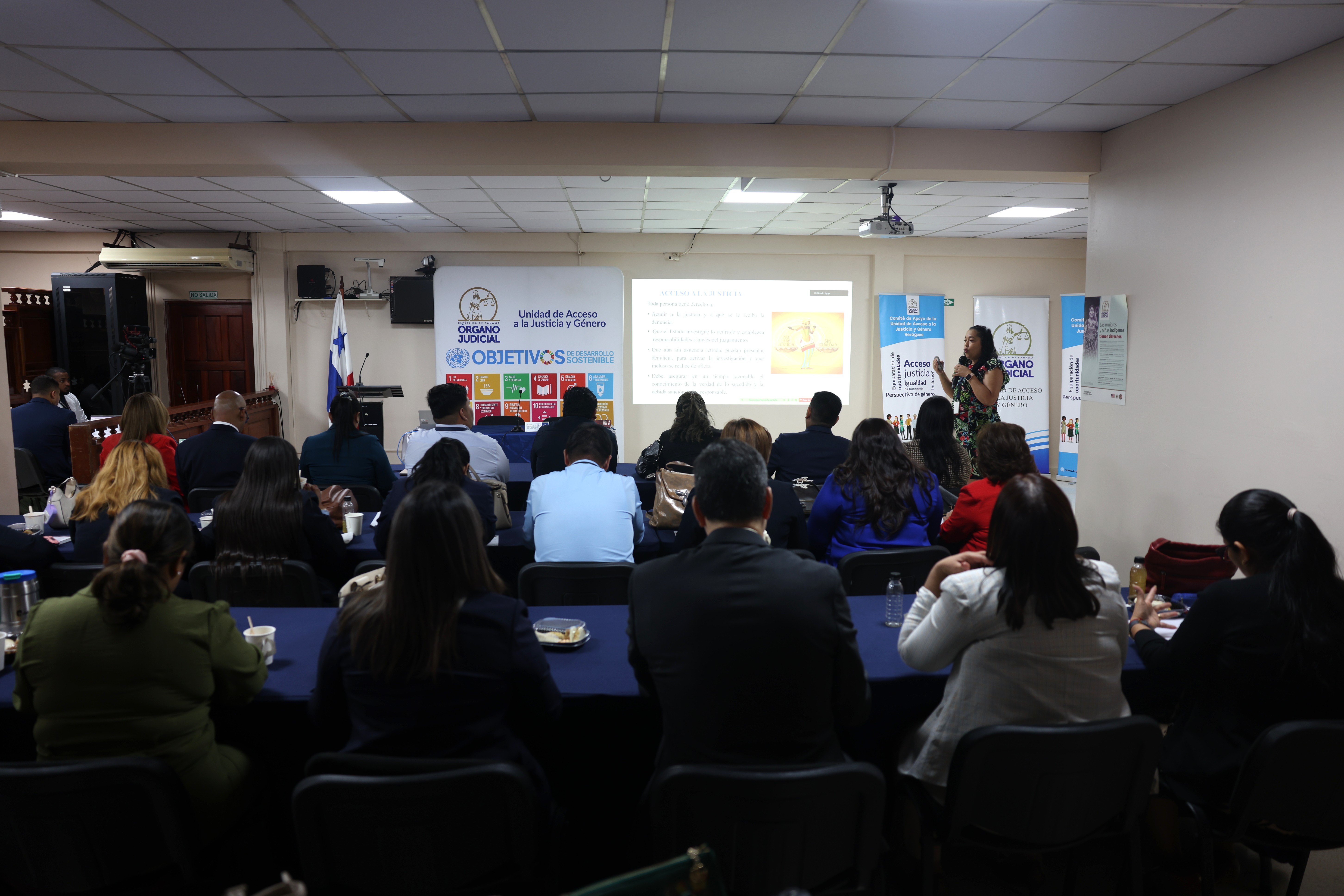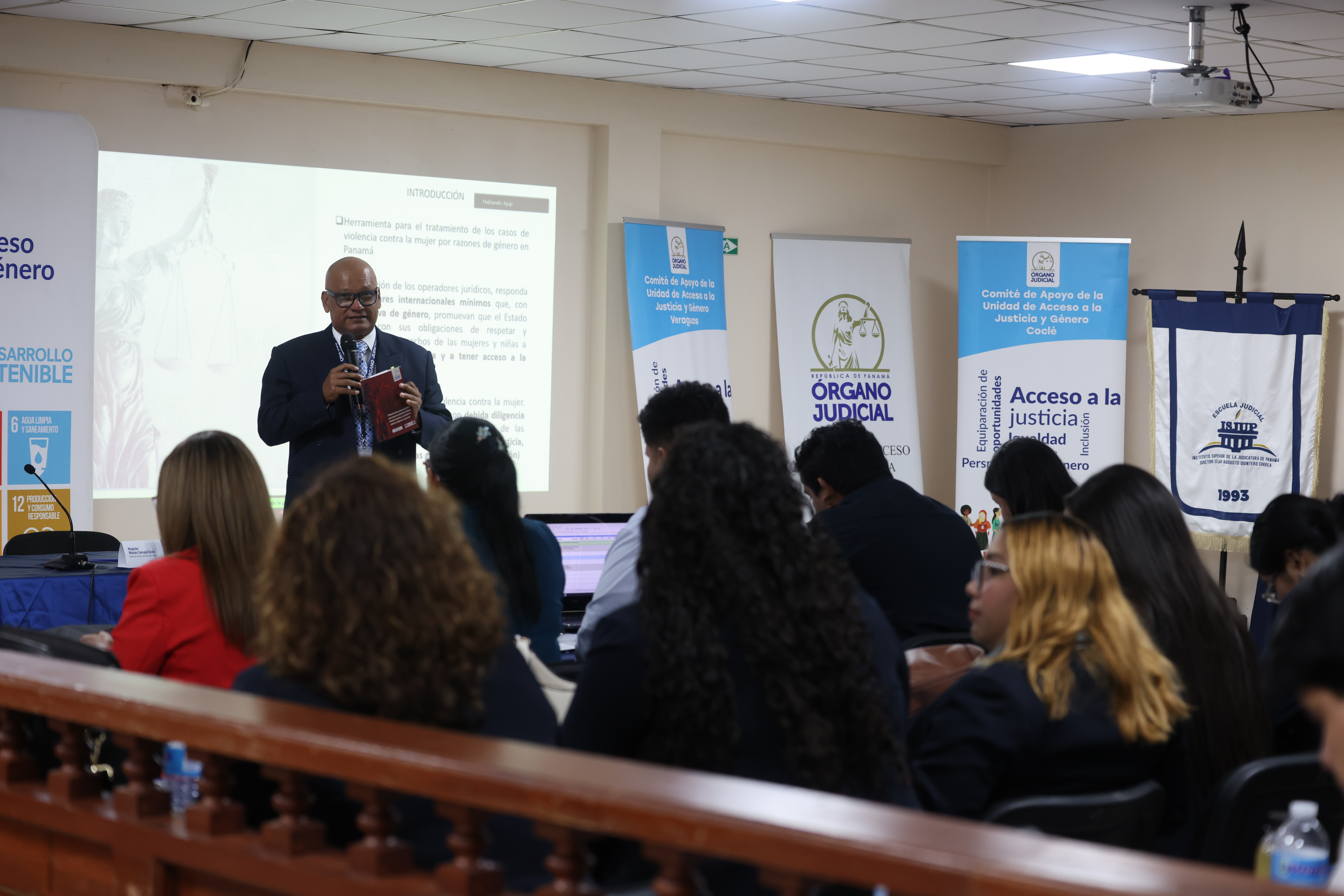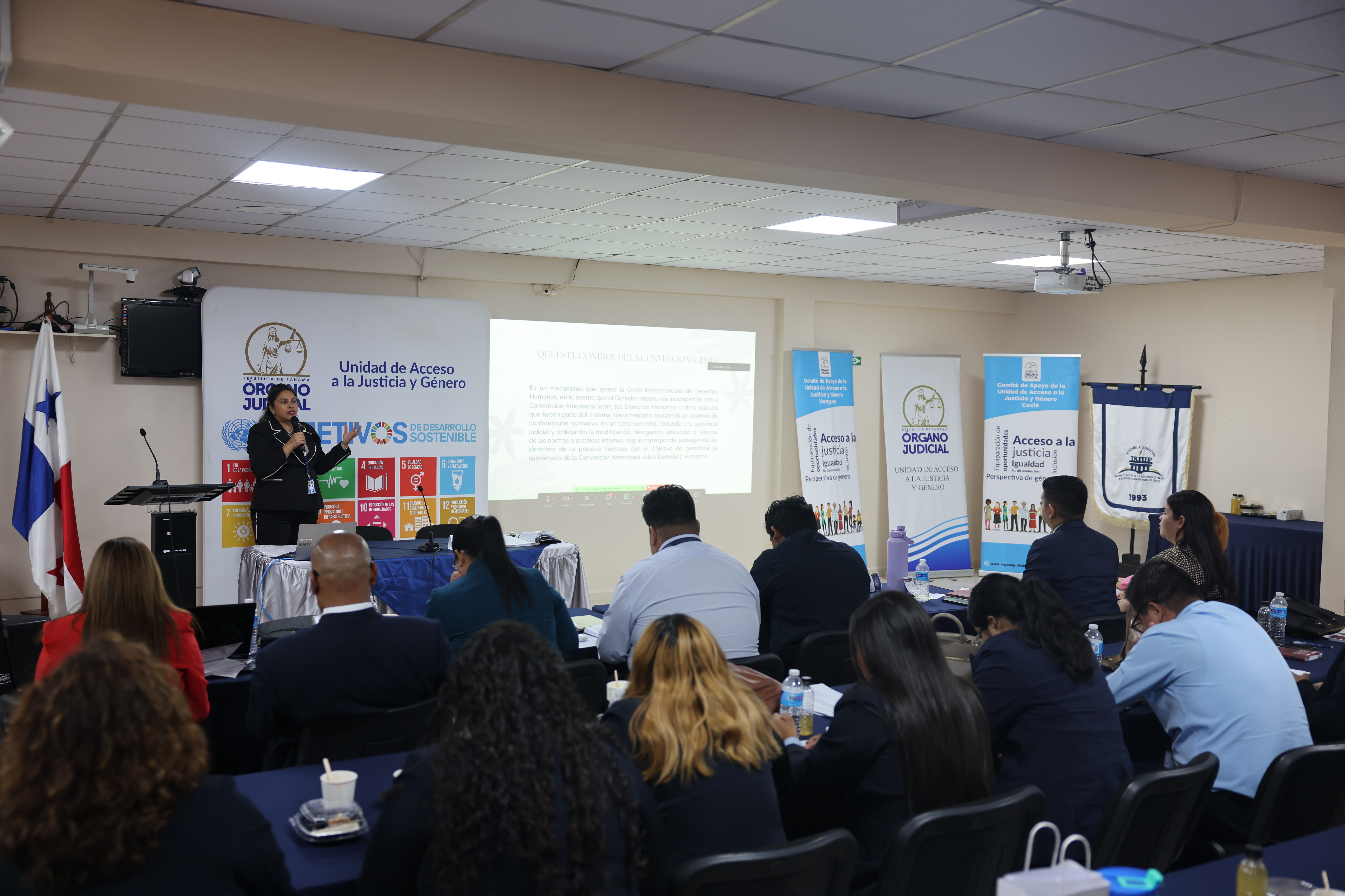 La jornada académica se realizó en Santiago de Veraguas, en el salón de audiencias de juicio oral, y fue inaugurada con palabras (grabadas en video) de la magistrada presidenta de la Corte Suprema de Justicia (CSJ), María Cristina Chen Stanziola, quien destacó que, a través de estos dos comités, no solo se marcó un hito fundamental en el fortalecimiento del Órgano Judicial, sino que también se responde a un marco institucional robusto, sustentado en los acuerdos de esta Corte y en su política de acceso a la justicia y género.