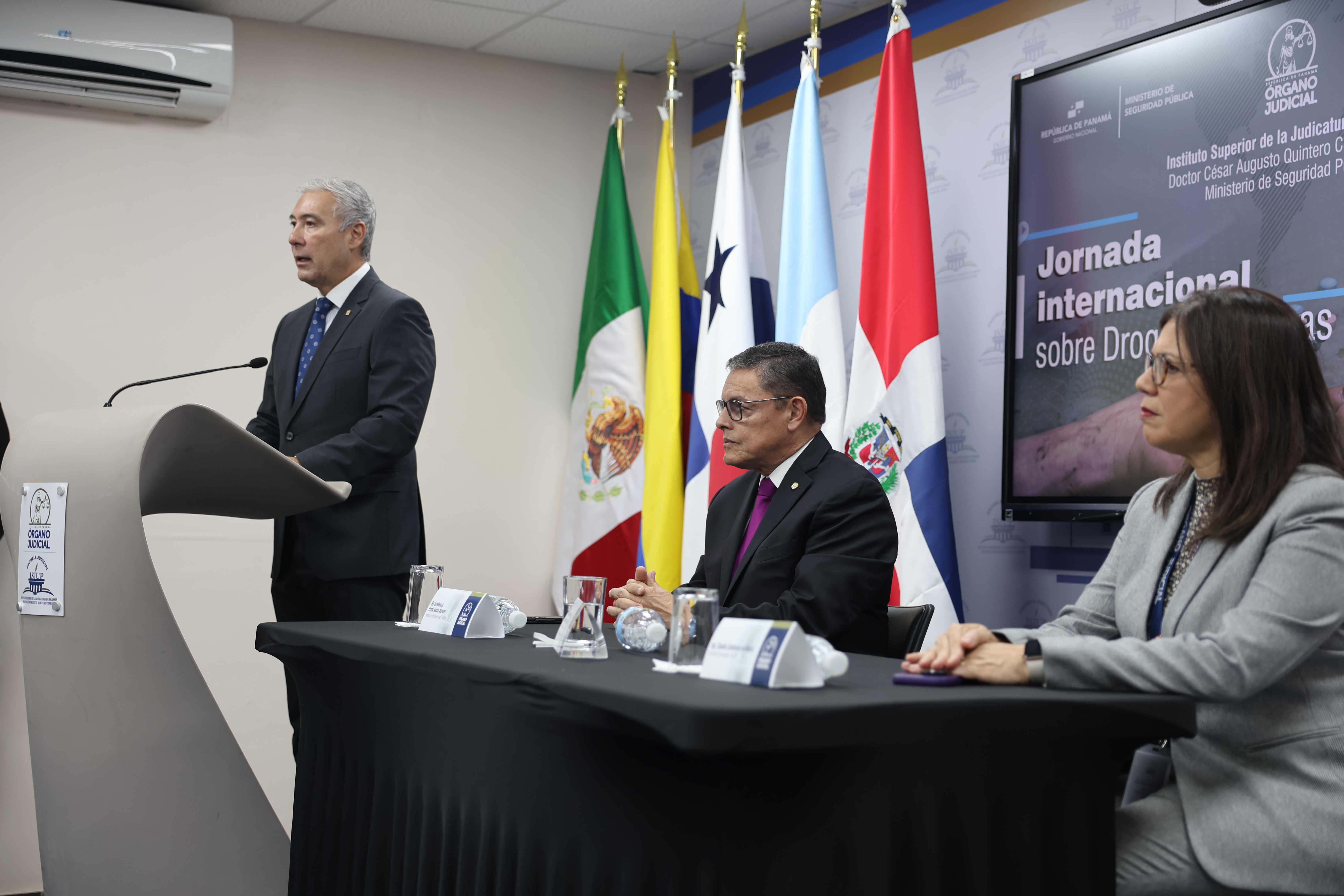 El evento contó con la participación de distinguidos expositores internacionales, entre ellos el general retirado Jorge Luis Vargas Valencia, el doctor David Carapia Zacarías, el coronel retirado José Luis Navas Herrera y el capitán de fragata Francisco del Rosario Sánchez, quienes aportaron conocimientos especializados, experiencias comparadas y buenas prácticas para el abordaje integral del fenómeno de las drogas sintéticas y su vinculación con estructuras delictivas de alta complejidad.