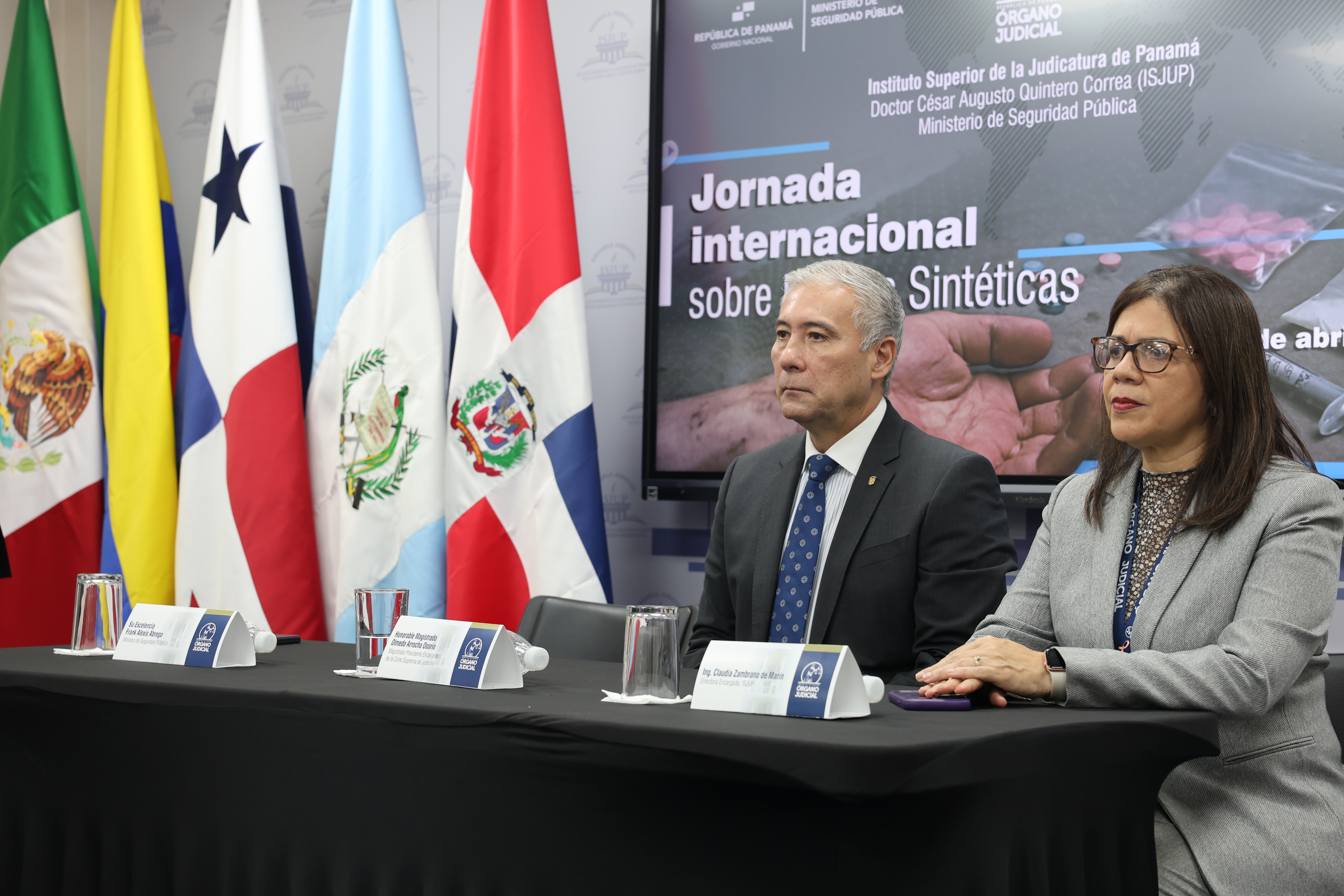 La apertura de la jornada estuvo a cargo del Honorable Magistrado Olmedo Arrocha Osorio, Magistrado Presidente Encargado de la Corte Suprema de Justicia, y de Su Excelencia Frank Alexis Ábrego, Ministro de Seguridad Pública, quienes, en sus respectivas intervenciones, destacaron la necesidad de fortalecer una respuesta estatal integral, articulada y oportuna frente a este fenómeno emergente.