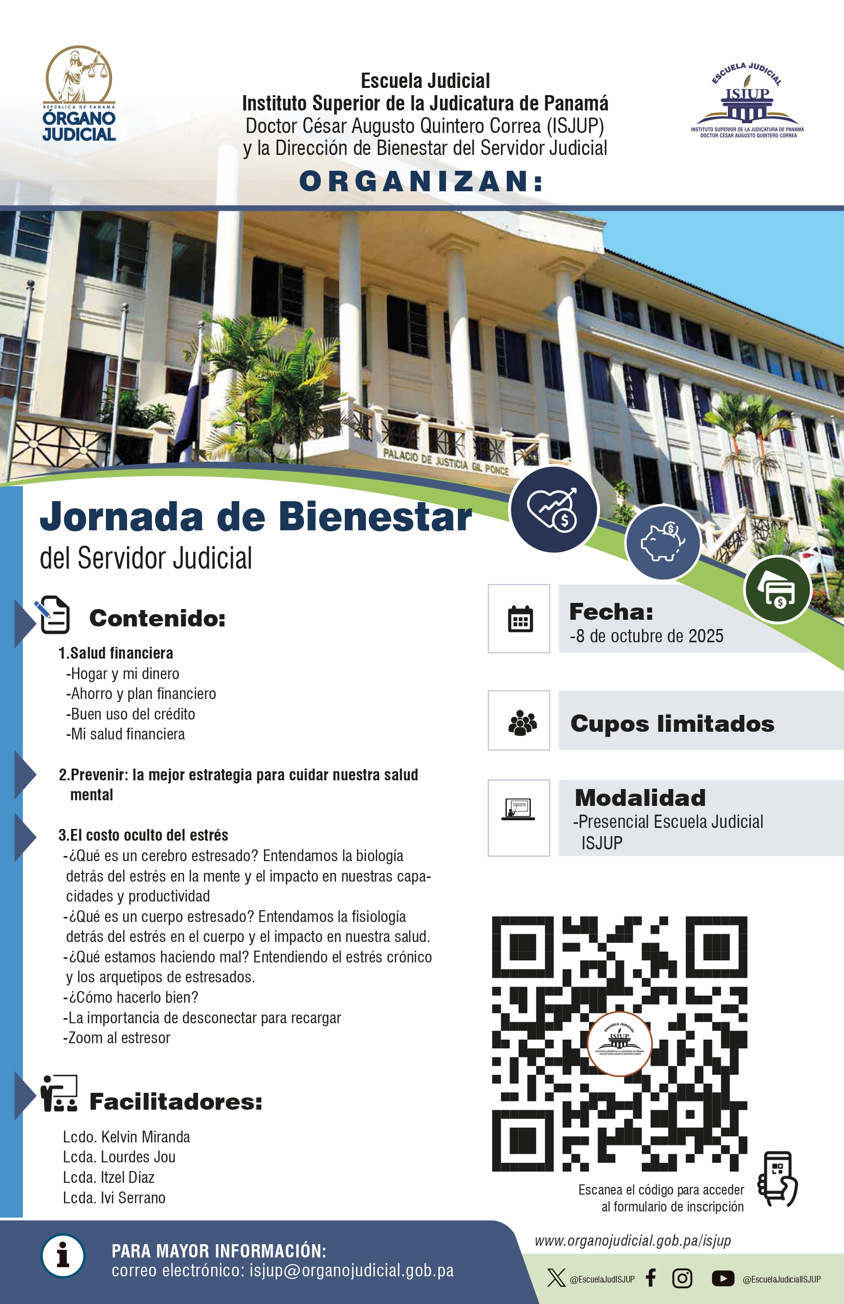 PARTICIPA EN LA JORNADA DE BIENESTAR DEL SERVIDOR JUDICIAL Publicado: 2025-10-01 09:28:20 Email Reproducir ENLACE DE INSCRIPCIONES