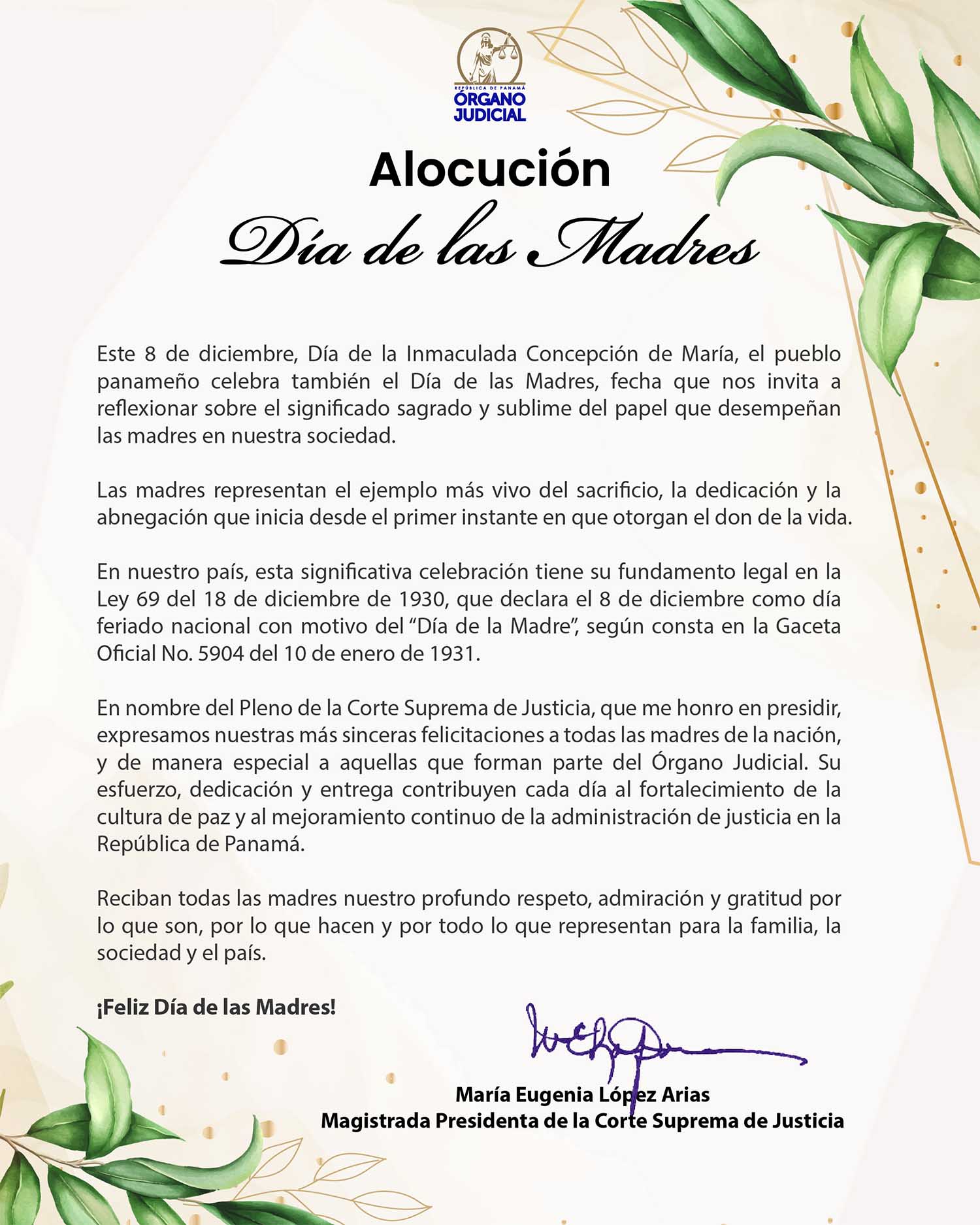 Alocución Día de Las Madres