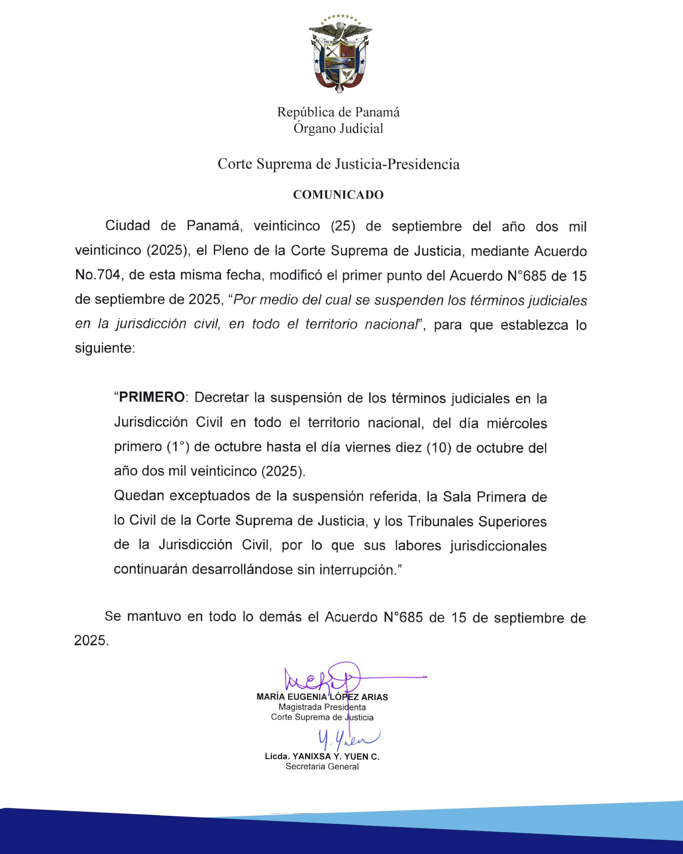 Comunicado- Corte Suprema de Justicia