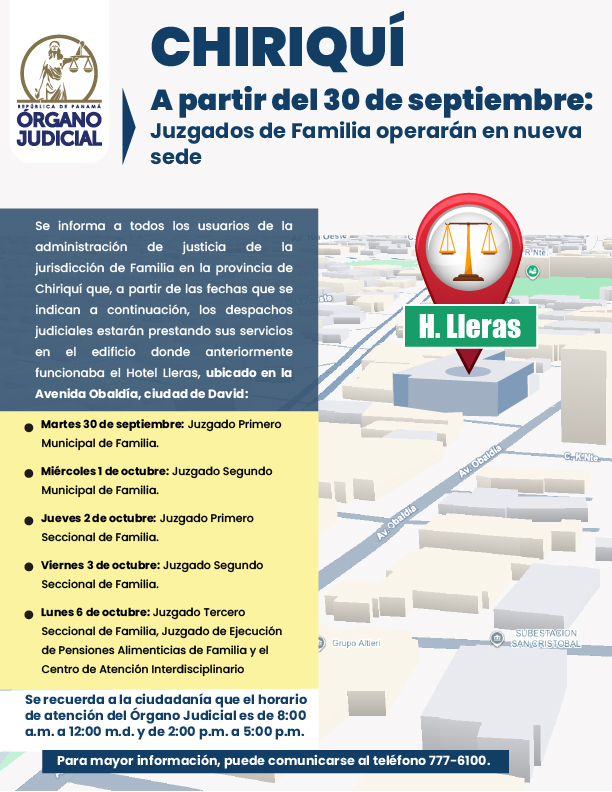 A partir del 30 de septiembre, los Juzgados de Familia de Chiriquí funcionarán en una nueva sede Publicado: 2025-09-29 13:47:41 Email Reproducir