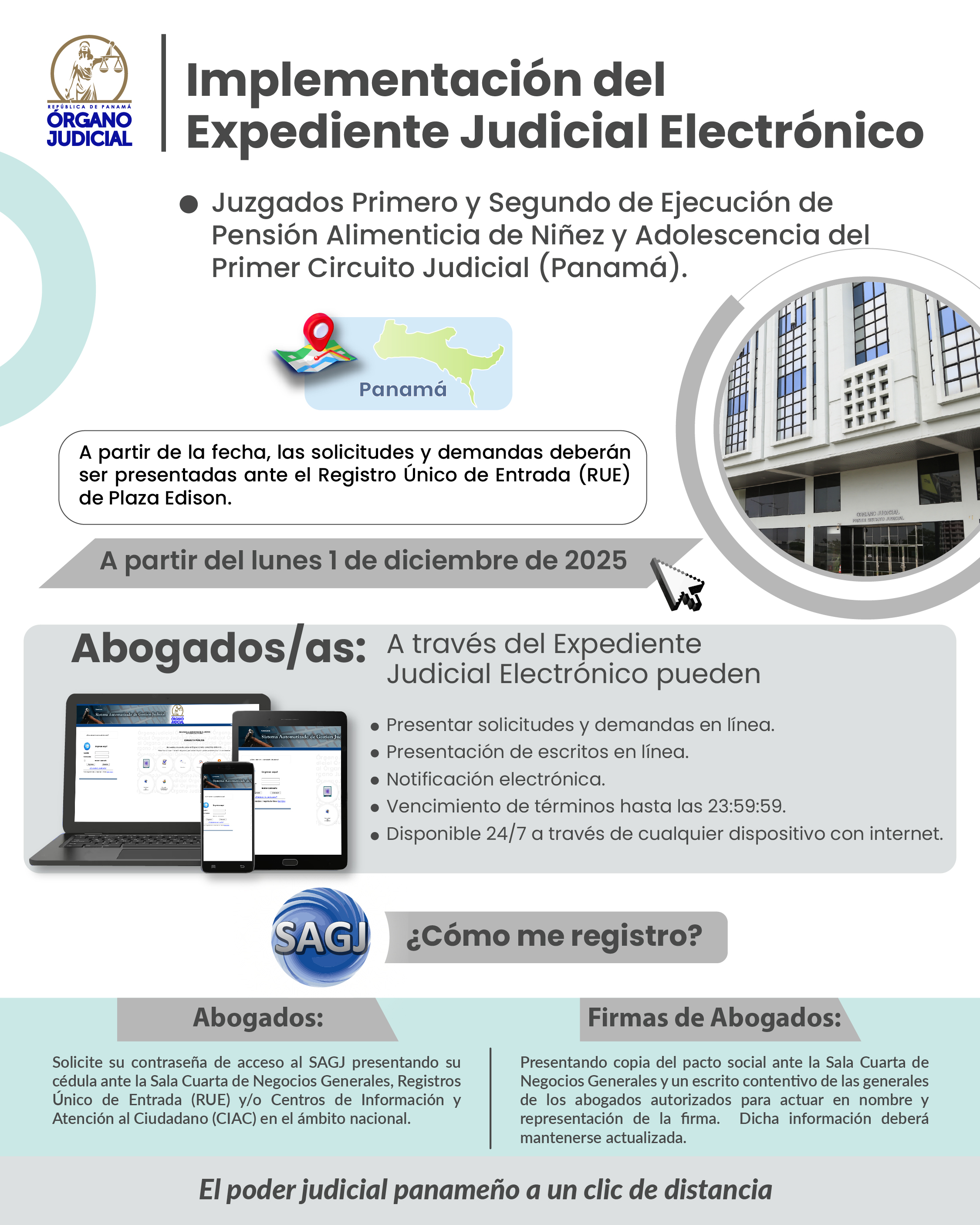 Implementación del EJE en Juzgados 1. ° y 2. ° de Ejecución de Pensión Alimenticia de Niñez y Adolescencia de Panamá Publicado: 2025-11-27 16:47:30 Email Reproducir