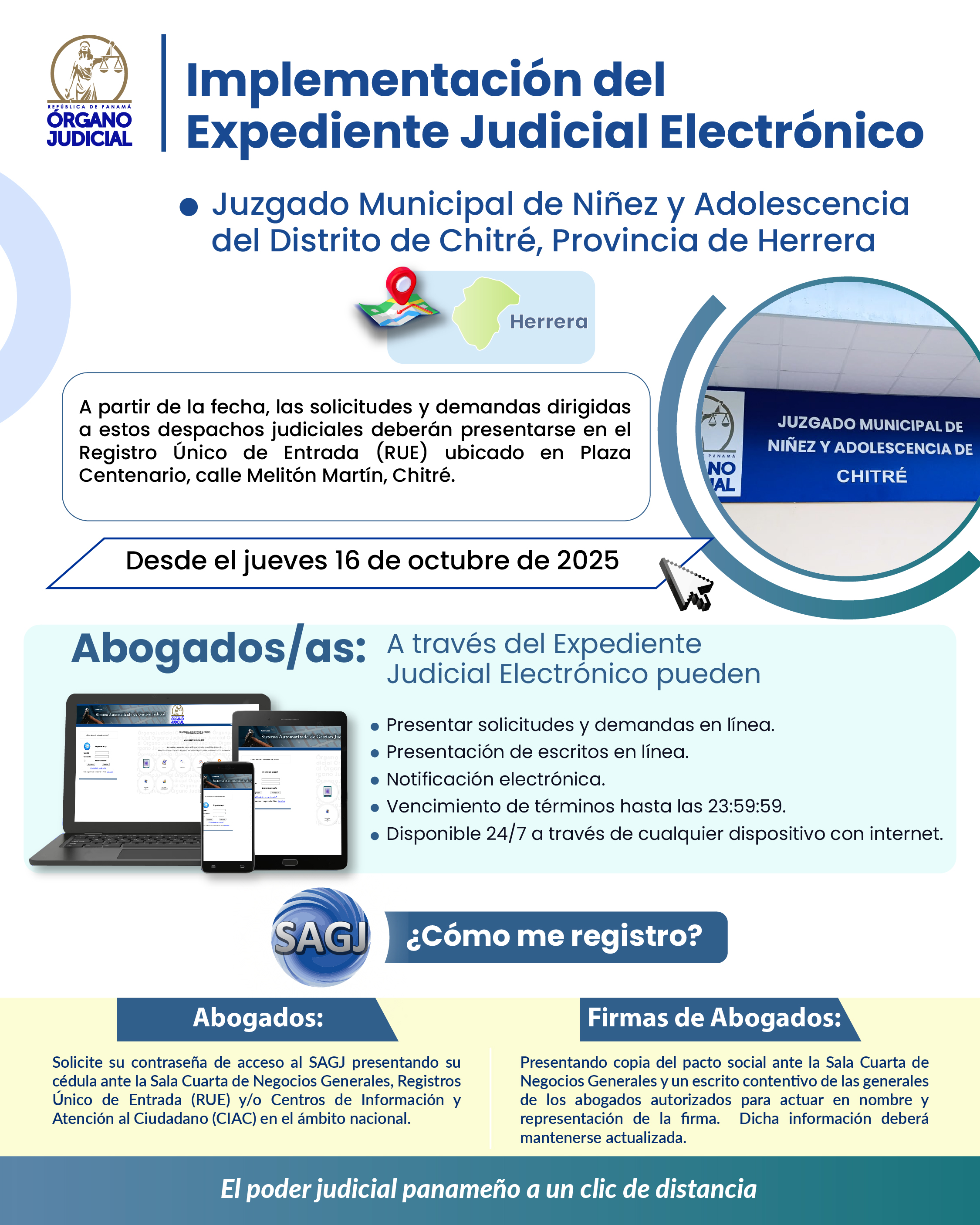 Implementación del Expediente Judicial Electrónico en el Juzgado Municipal de Niñez y Adolescencia de Chitré, en Herrera Publicado: 2025-10-15 15:14:50 Email Reproducir