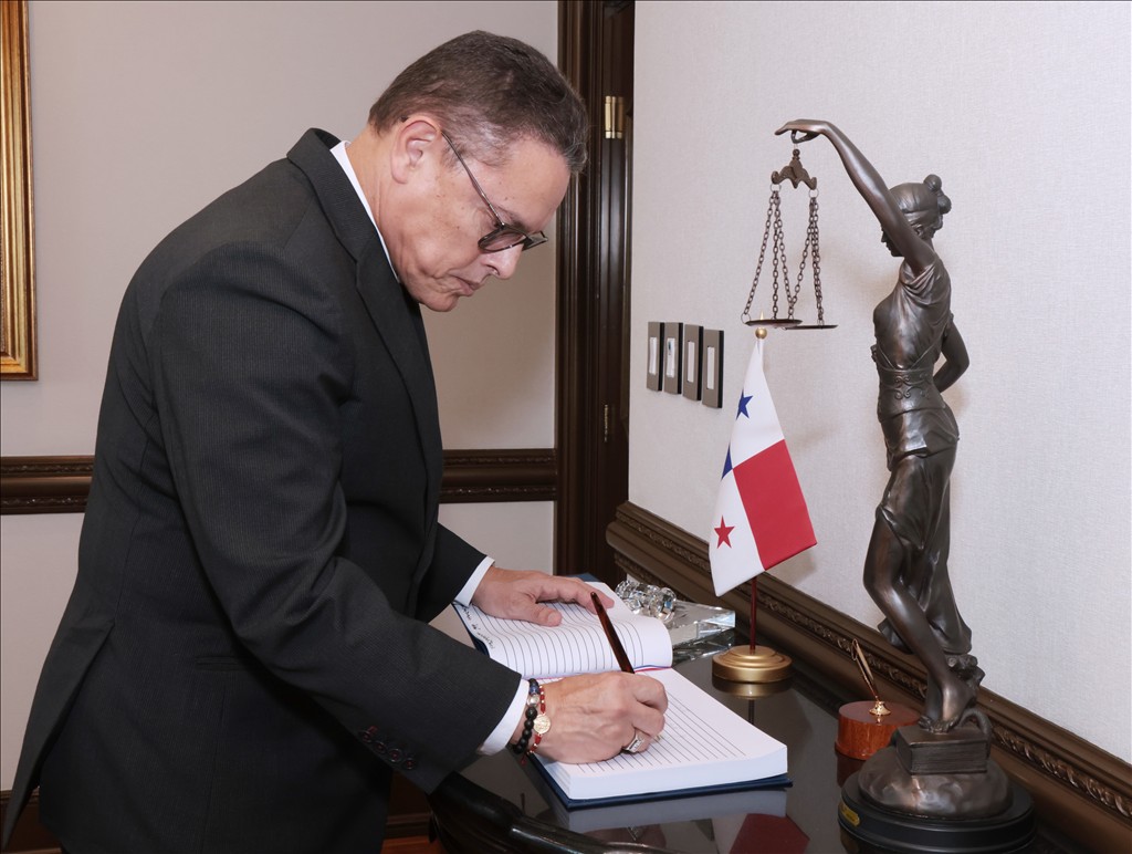 La Magistrada Presidenta de la Corte Suprema de Justicia (CSJ), María Cristina Chen Stanziola, el Magistrado Vicepresidente Olmedo Arrocha Osorio y la Magistrada Presidenta de la Sala Segunda de lo Penal, Maribel Cornejo Batista, sostuvieron un encuentro con el Ministro de Seguridad Pública, Frank Alexis Ábrego, la mañana de este martes 3 de febrero, en el Palacio de Justicia Gil Ponce en Ancón.