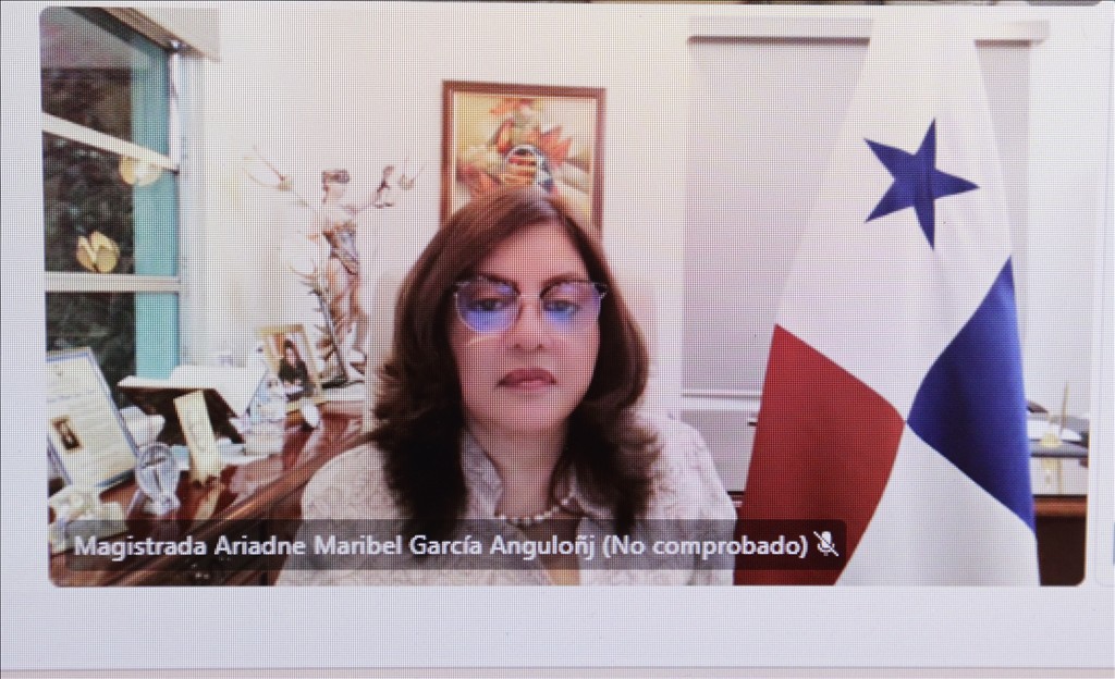 Durante su intervención, la magistrada García Angulo expuso los procesos que se encuentran en desarrollo para el fortalecimiento del sistema de protección de los derechos de la niñez panameña, con la cooperación de UNICEF. Asimismo, presentó la propuesta de reforma a la Ley 40 de 26 de agosto de 1999, que busca fortalecer y equiparar los derechos, instituciones y procedimientos aplicables a adolescentes en armonía con el modelo procesal acusatorio vigente.