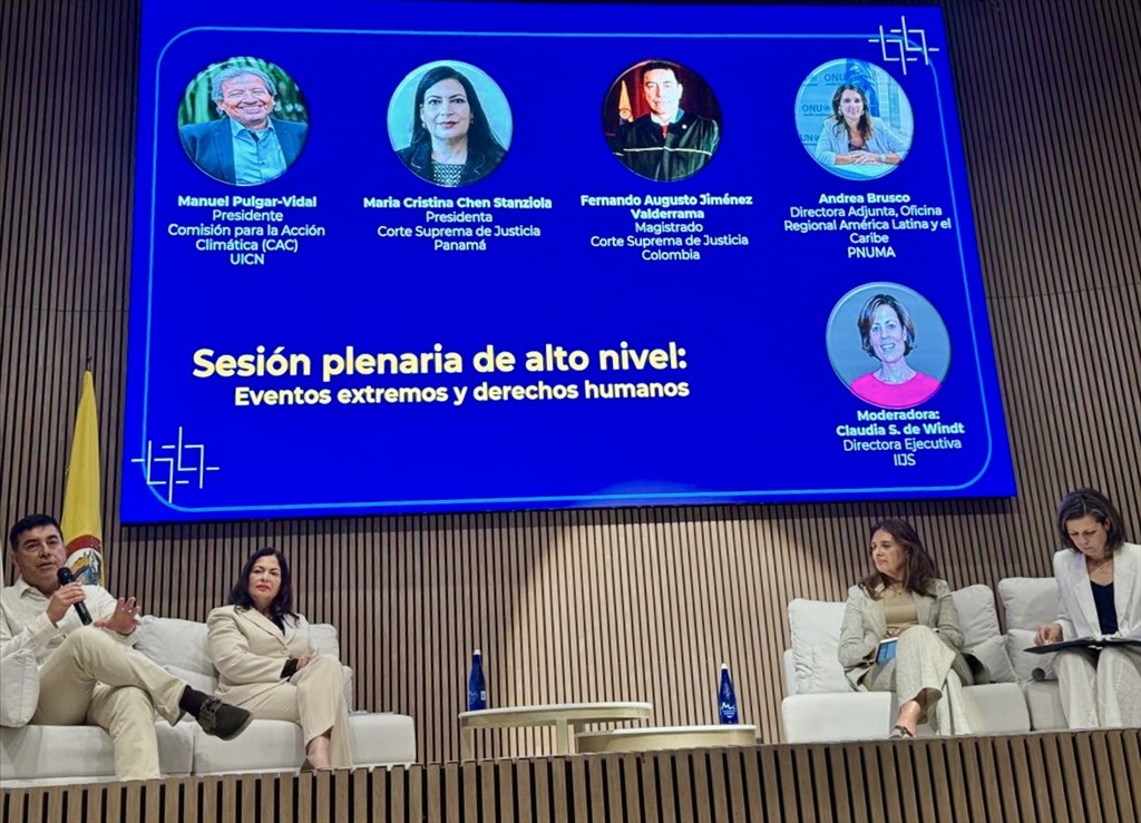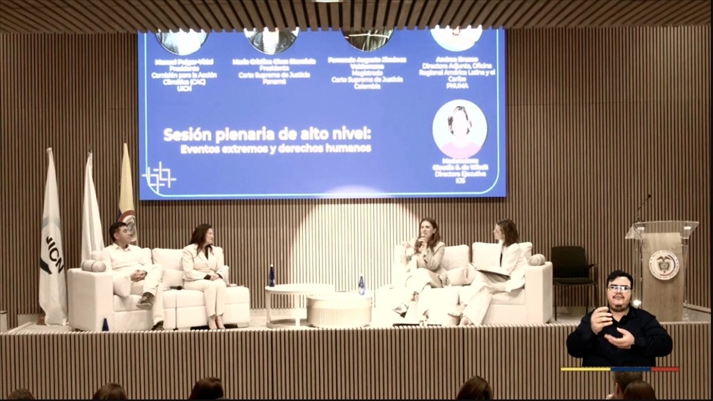 Durante el evento académico, la magistrada Chen Stanziola participó en la plenaria “Sesión de Alto Nivel: Eventos extremos y derechos humanos”, la cual fue moderada por la directora ejecutiva del IIJS, Claudia S. de Windt.