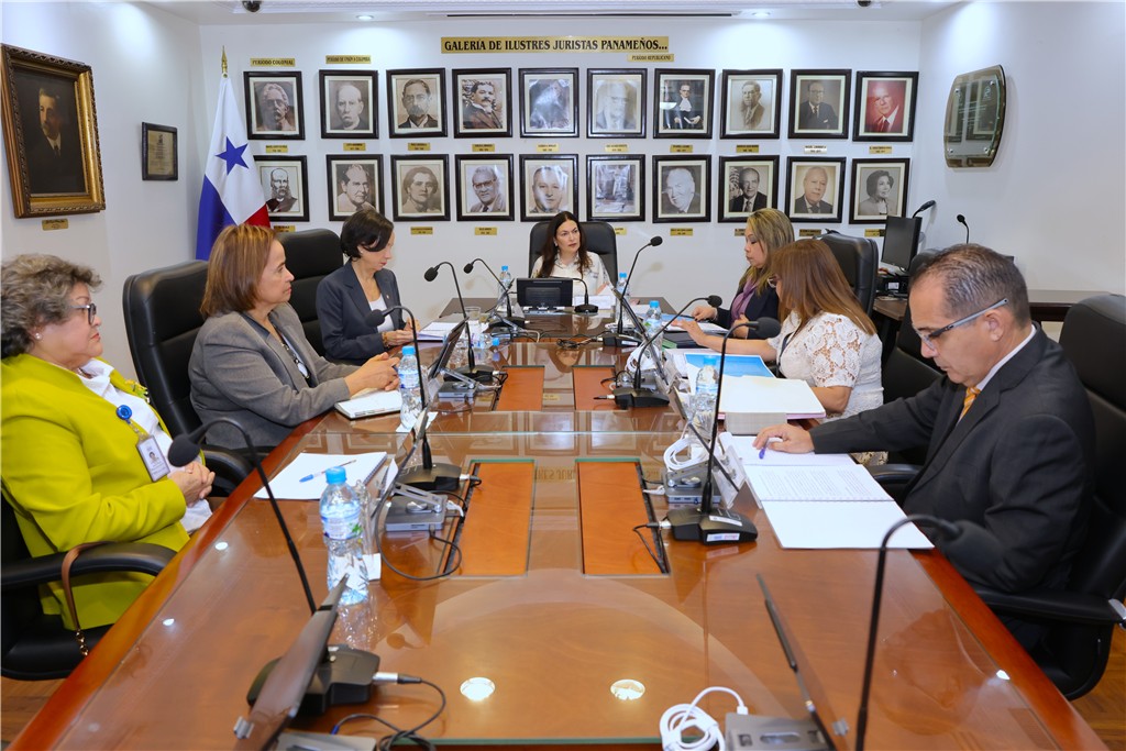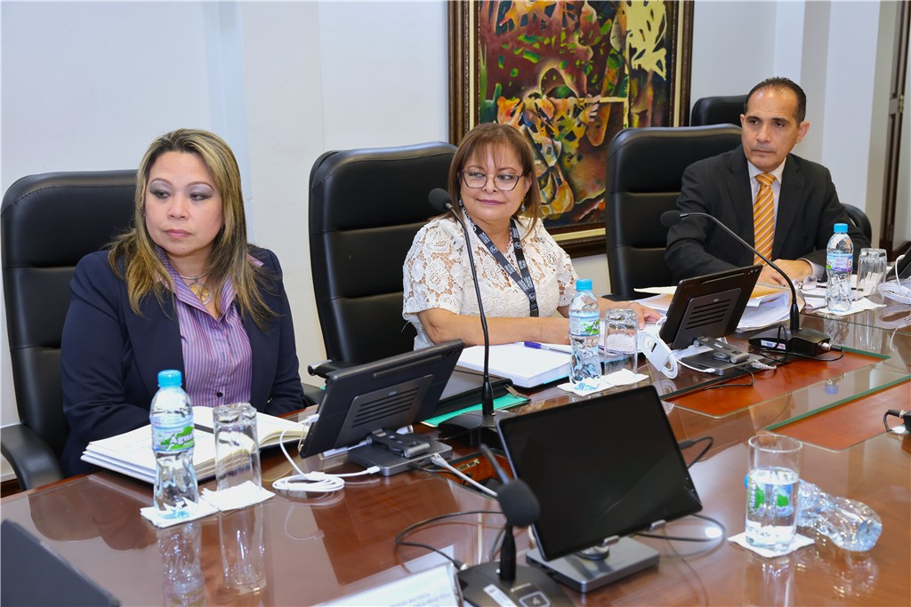 La magistrada presidenta de la Corte Suprema de Justicia, María Cristina Chen Stanziola, junto a la magistrada Maribel Cornejo Batista, presidenta de la Sala Segunda de lo Penal, sostuvieron la primera reunión de trabajo con el Consejo de Administración de la Carrera de la Defensa Pública, realizada este viernes 6 de febrero de 2026.