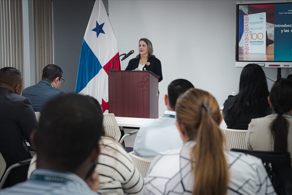 Durante su intervención, la magistrada Russo de Cedeño expuso el marco normativo internacional y regional relacionado con el acceso a la justicia y explicó el origen, evolución y actualización de las 100 Reglas de Brasilia (2008, revisadas en 2018), un instrumento clave para garantizar una atención adecuada a personas en situación de vulnerabilidad dentro de los sistemas judiciales.
