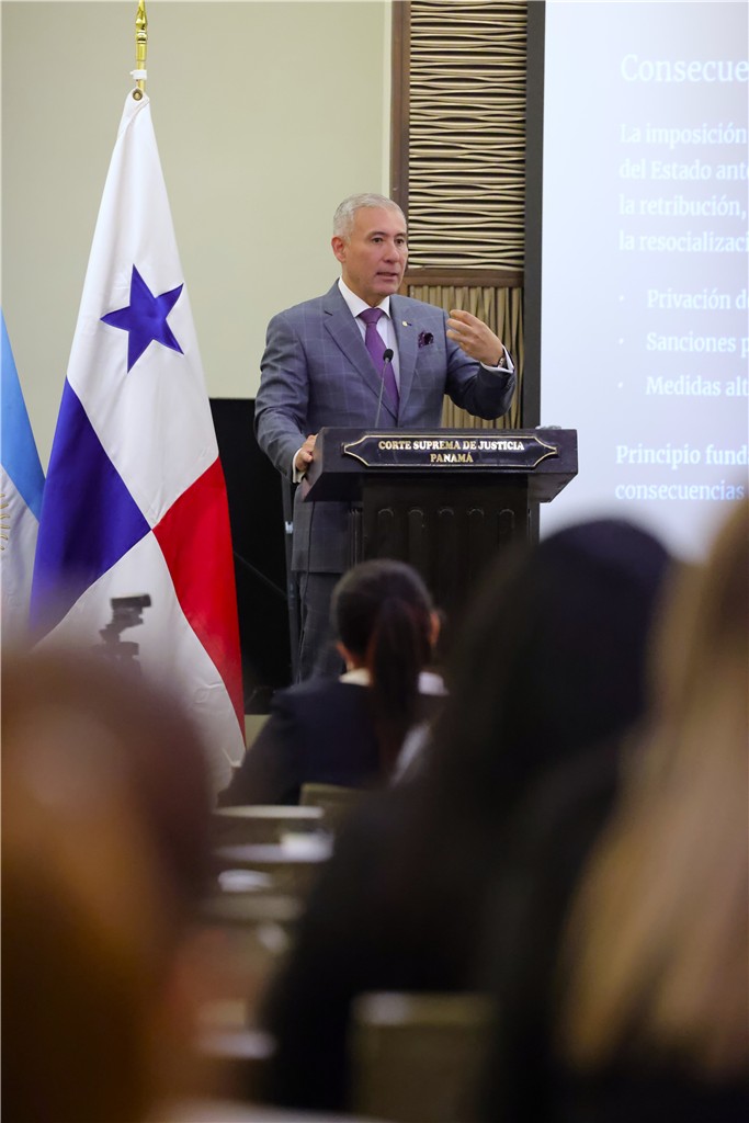 En su exposición, el magistrado Arrocha Osorio habló sobre la acción restaurativa y el marco normativo aplicable en Panamá, en donde la reparación es una obligación legal, no discrecional, constituyendo un derecho fundamental de la víctima.