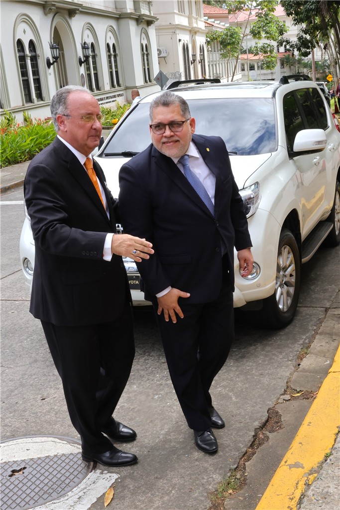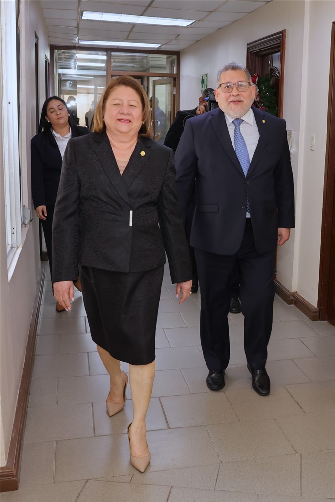 A su llegada el magistrado Carlos Ernesto Villalobos Jaén fue recibido por los magistrados y magistradas de la CSJ, María Eugenia López Arias (presidenta); Carlos Alberto Vásquez Reyes (vicepresidente), Olmedo Arrocha Osorio, Maribel Cornejo Batista, Ariadne Maribel García Angulo, Miriam Yadira Cheng Rosas y María Cristina Chen Stanziola. También estuvo presente la secretaria general de la CSJ, Yanixsa Y. Yuen.
