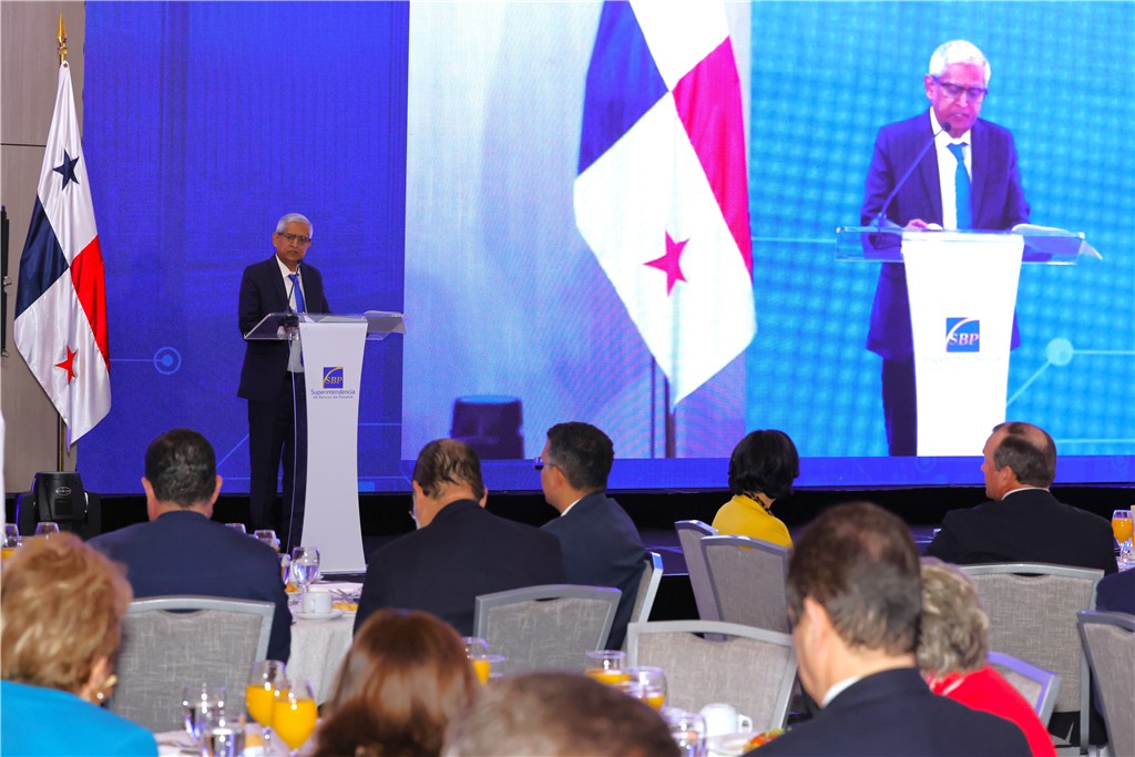 Las palabras de bienvenida estuvieron a cargo del superintendente de Bancos de Panamá, Milton Ayón Wong, quien resaltó -a través de un vídeo institucional- los 28 años de creación de la institución que regenta.