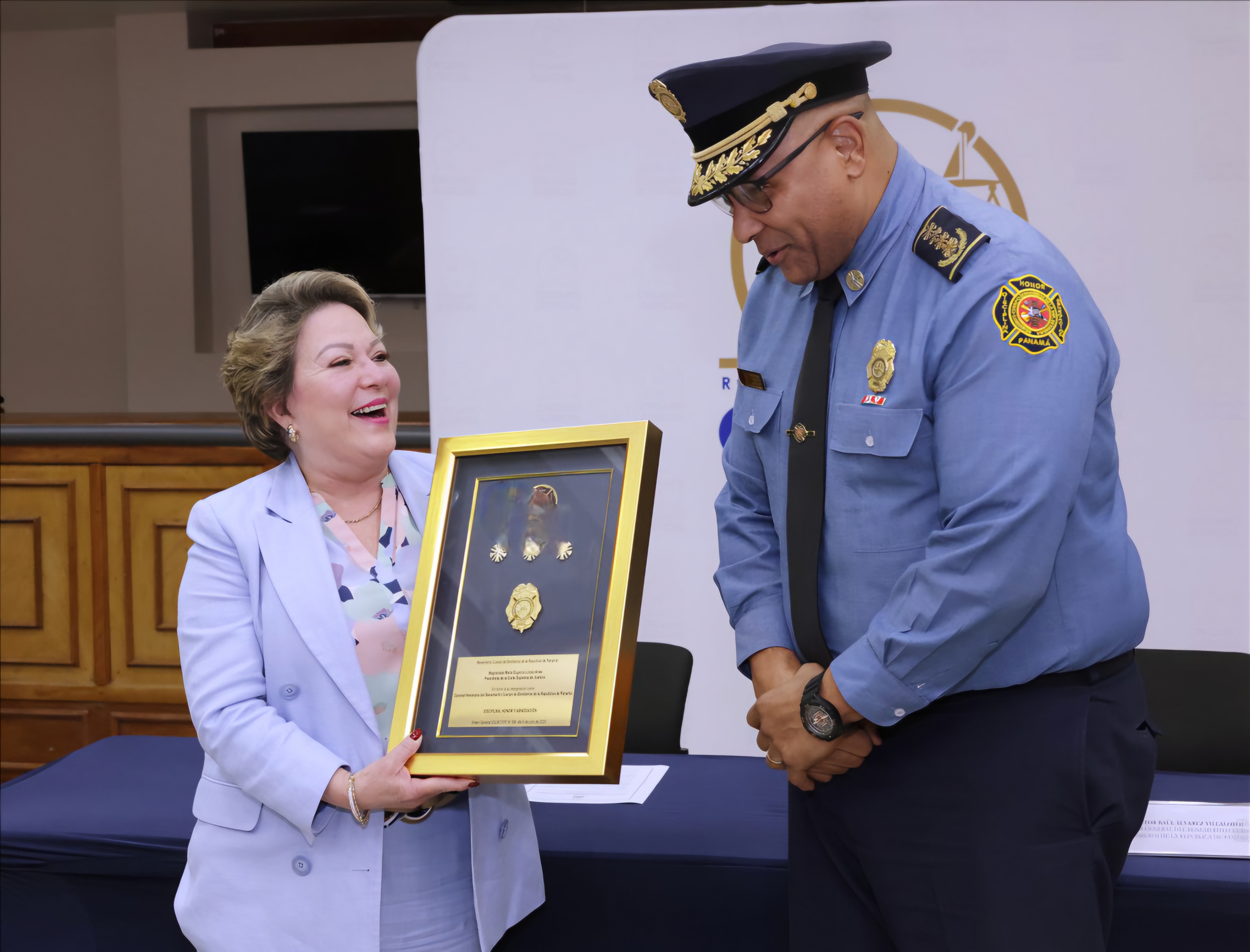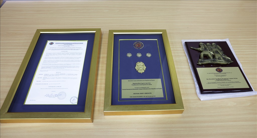 En el marco de la suscripción de este convenio, se le otorgó a la magistrada Presidenta María Eugenia López Arias, el rango de Coronel Honoraria del Benemérito Cuerpo de Bomberos de la República de Panamá, para lo cual se le hizo entrega de sendas resoluciones, placas de reconocimiento e insignias que acreditan su abnegado esfuerzo reflejado por su liderazgo, integridad y valiosa contribución al fortalecimiento del sistema judicial panameño.