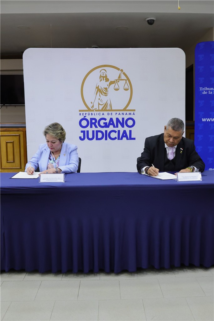 La firma del convenio estuvo a cargo de la magistrada presidenta de la Corte Suprema de Justicia (CSJ), María Eugenia López Arias, y del magistrado presidente del Tribunal Administrativo de la Función Pública, Carlos Ayala Montero, en un acto celebrado en el Salón de Casación “Magistrado Gabriel Elías Fernández Madrid”, del Palacio de Justicia Gil Ponce.