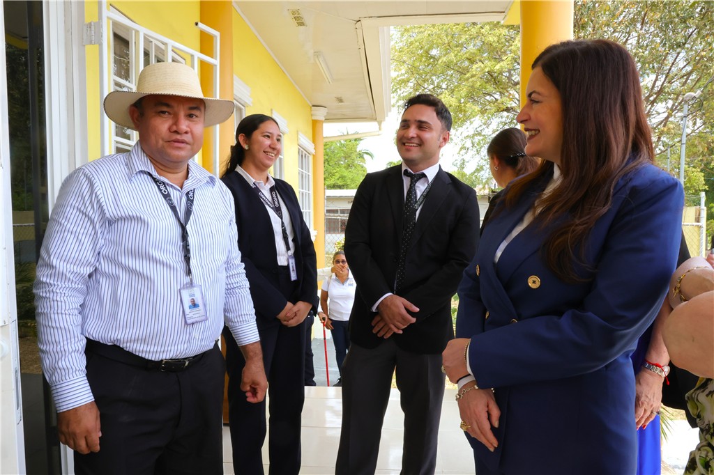Al llegar a estas instalaciones, los magistrados Ariadne Maribel García Angulo, de la Sala Segunda de lo Penal y coordinadora de la Unidad de Acceso a la Justicia y Género, y Carlos Ernesto Villalobos Jaén, de la Sala Primera de lo Civil, se unieron a la gira de trabajo liderada por la magistrada presidenta.