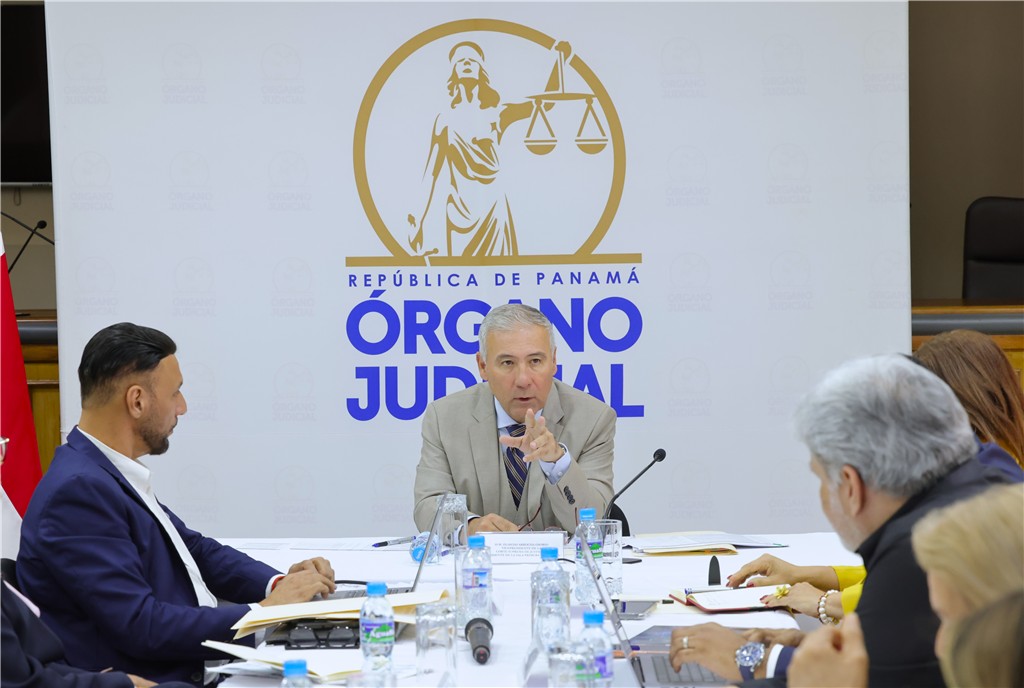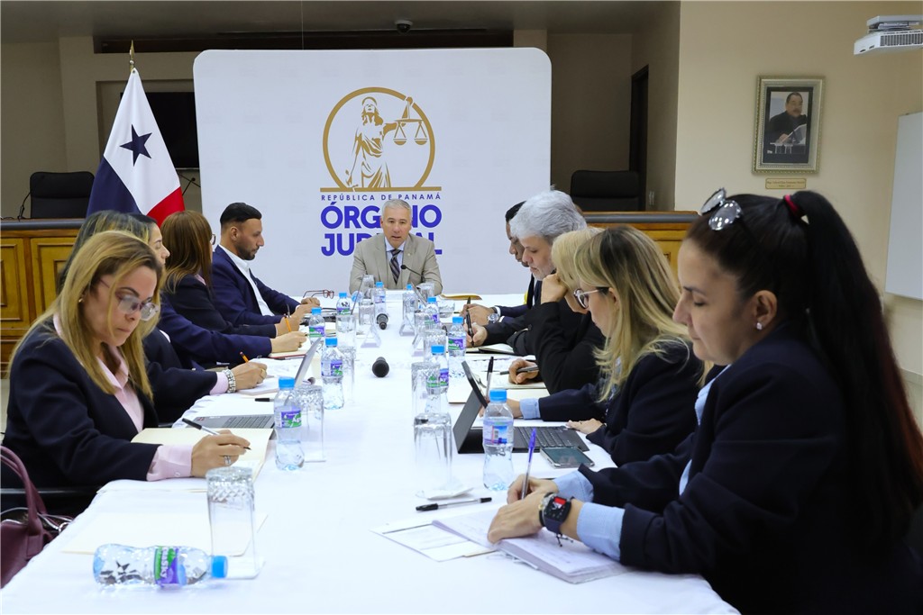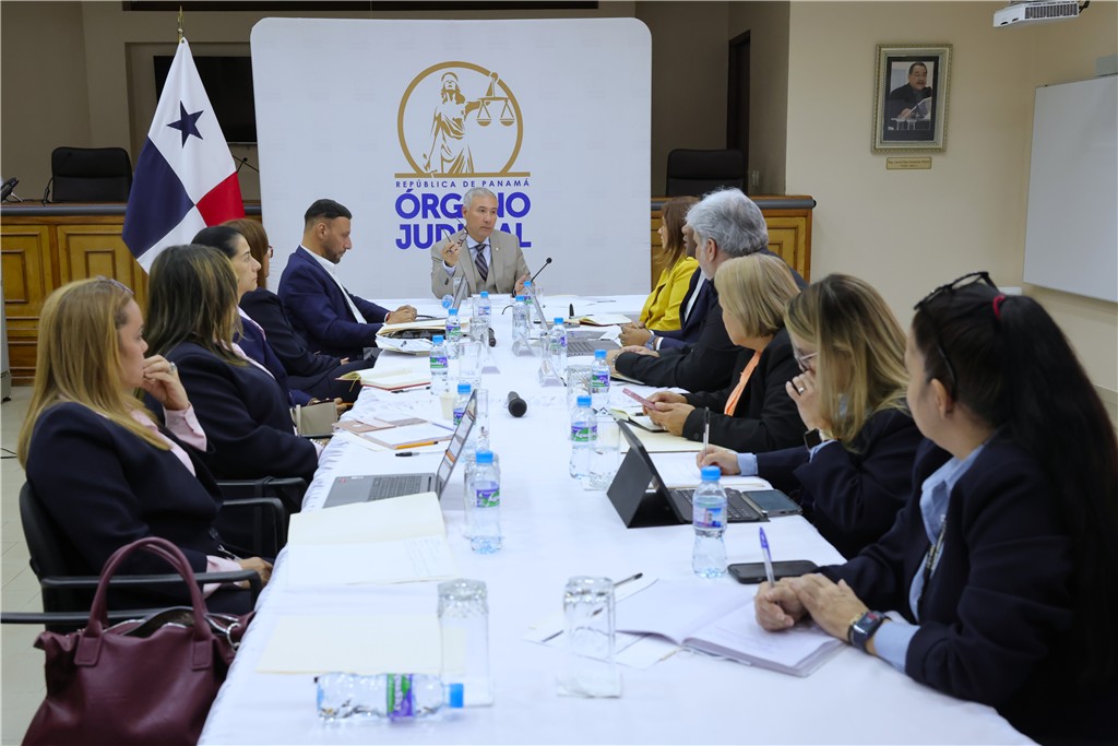 El magistrado presidente encargado y presidente de la Sala Primera de lo Civil de la Corte Suprema de Justicia (CSJ), Olmedo Arrocha Osorio, sostuvo una reunión de trabajo sobre el Programa de Apoyo a la Transformación Digital del Órgano Judicial, en el salón de Casación del Palacio de Justicia Gil Ponce.