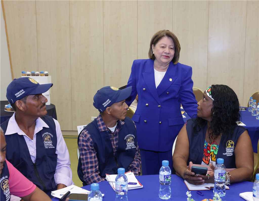 La expositora elogió el compromiso de los facilitadores judiciales comunitarios, a quienes calificó como ejemplos vivos de participación ciudadana activa que impulsa el desarrollo social.