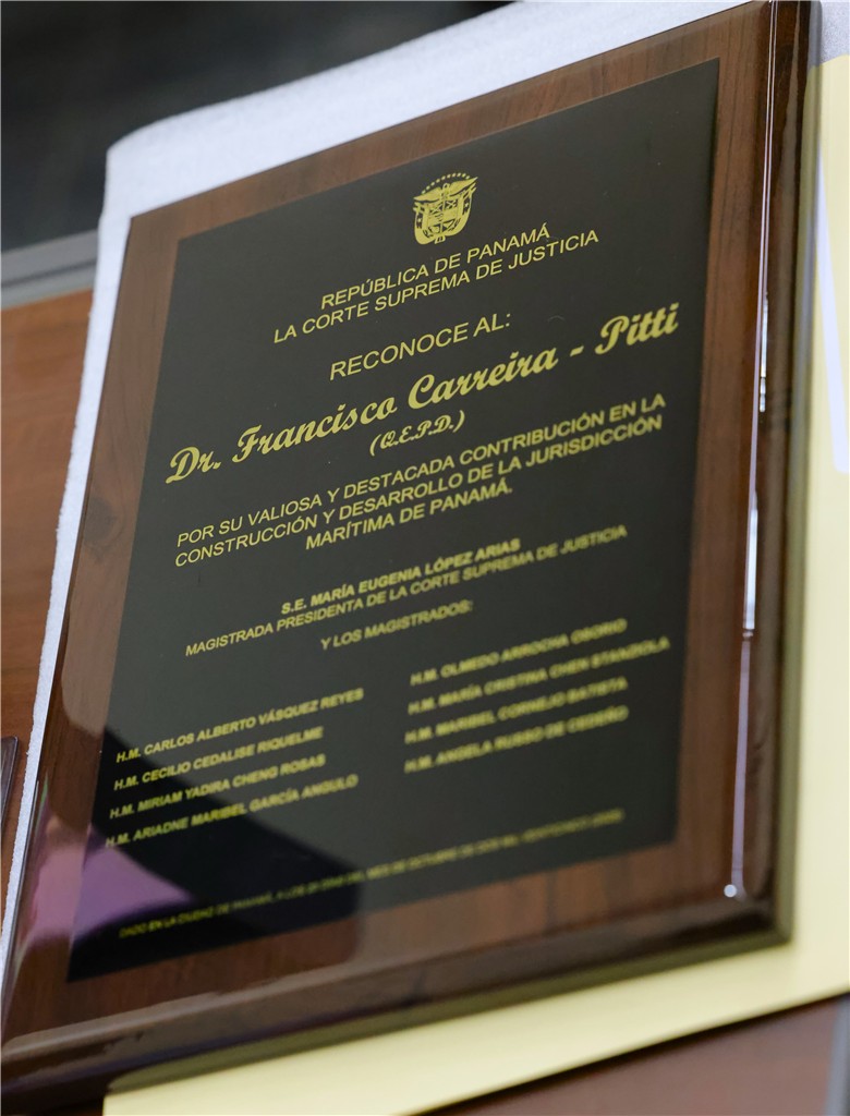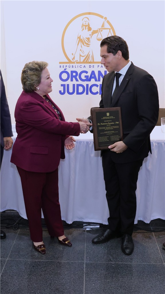 Durante el acto, se rindió además un homenaje póstumo al Doctor Francisco Carreira Pitti (Q.E.P.D.), en reconocimiento a su destacada trayectoria en el ámbito jurídico. Sus familiares más cercanos compartieron este emotivo momento, en el que se recordaron anécdotas de su labor en los tribunales de justicia. El Licenciado Remy Francisco Carreira fue el encargado de pronunciar las palabras de agradecimiento en nombre de la familia.