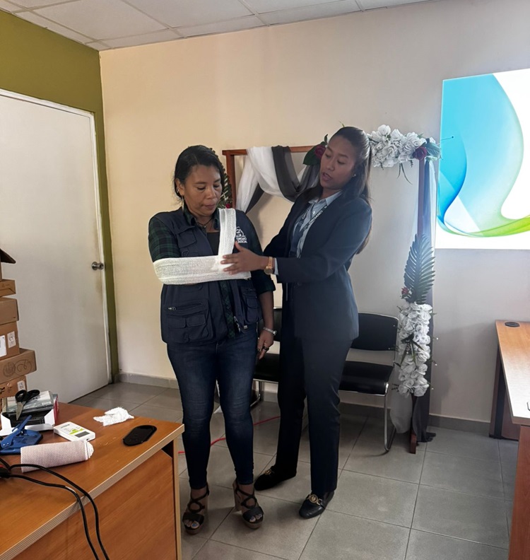La actividad se desarrolló como parte del compromiso institucional de promover culturas de prevención y respuestas de forma oportuna ante eventos imprevistos relacionados a desastres naturales, incendios, vendajes, obstrucción en las vías respiratorias, sismos, convulciones u otras situaciones que puedean afectar la seguridad de los ciudadanos tanto en las instalaciones judiciales, comunidades como en los hogares. Durante la capacitación, la licenciada Conquista explicó los protocolos básicos de seguridad, rutas de evacuación, puntos de encuentro y la importancia de mantener la calma y actuar de manera responsable ante cualquier eventualidad que se presente, realizando demostraciones con prácticas entre los participantes.