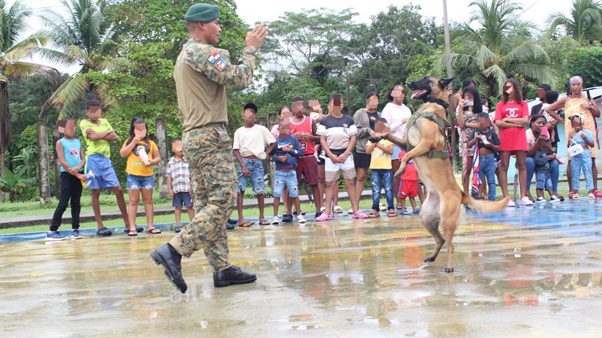 El evento dio inicio con una exhibición de la Unidad Canina de la 5ta Brigada de Fuerzas Especiales del Servicio Nacional de Fronteras (Senafront). Los asistentes presenciaron las destrezas y técnicas con las que son entrenados estos caninos, cuyo rol es fundamental para la seguridad en la región.