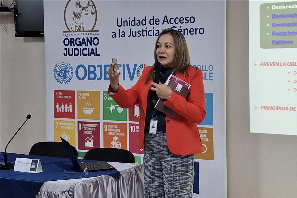 El taller inició con la ponencia “Terminología Internacional”, a cargo de la licenciada Abymelech Córdoba Moreno. Seguidamente, la licenciada Yasmín Cárdenas Quintero, jefa de la Unidad de Acceso a la Justicia y Género, expuso sobre “Enfoque de derechos humanos y convenciones”.