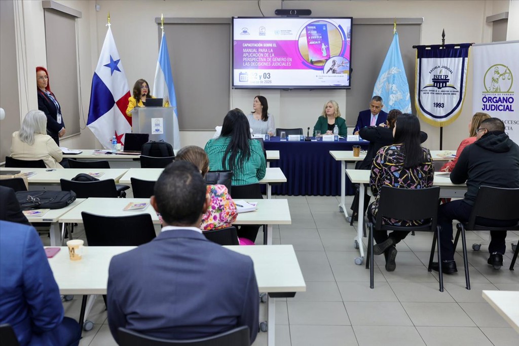 Con el objetivo de fortalecer la administración de justicia con enfoque de igualdad y derechos humanos, el Órgano Judicial dio inicio a la jornada de capacitación sobre el “Manual para la Aplicación de la Perspectiva de Género en las Decisiones Judiciales”, los días 2 y 3 de marzo de 2026, en modalidad presencial, en la sede del Instituto Superior de la Judicatura de Panamá (ISJUP), Doctor César Augusto Quintero Correa, en coordinación con la Oficina de las Naciones Unidas contra la Droga y el Delito (UNODC).