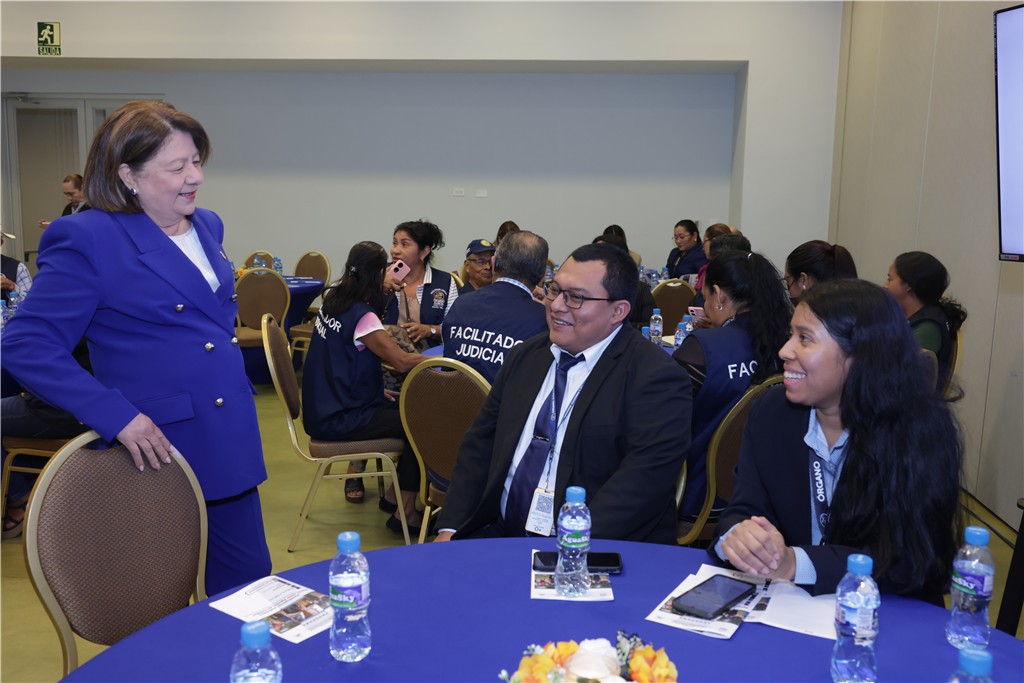 La expositora elogió el compromiso de los facilitadores judiciales comunitarios, a quienes calificó como ejemplos vivos de participación ciudadana activa que impulsa el desarrollo social.