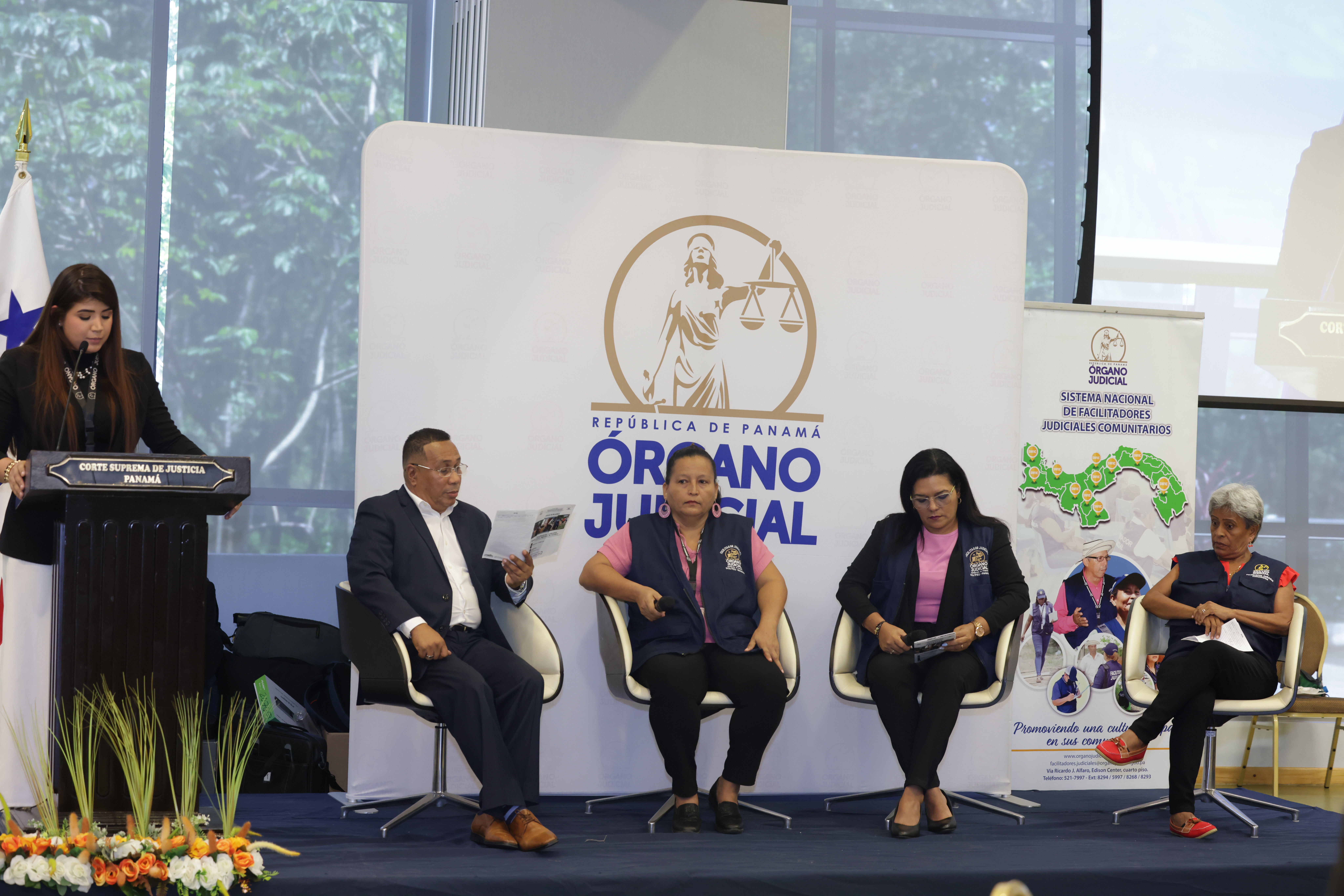La jornada contó con la presencia de la magistrada de la Corte Suprema de Justicia (CSJ) y coordinadora del Sistema Nacional de Facilitadores Judiciales Comunitarios (SNFJC), Miriam Yadira Cheng Rosas; y de la magistrada Eysa Escobar de Herrera, coordinadora del SNFJC en Panamá y Darién.